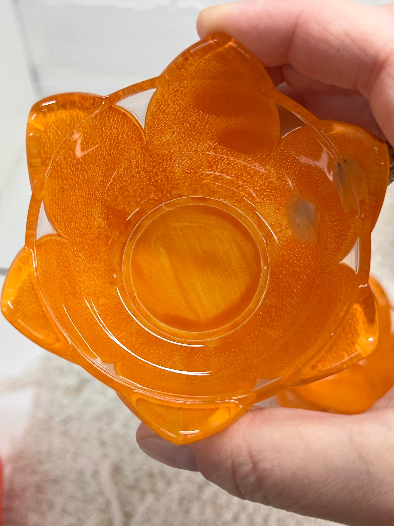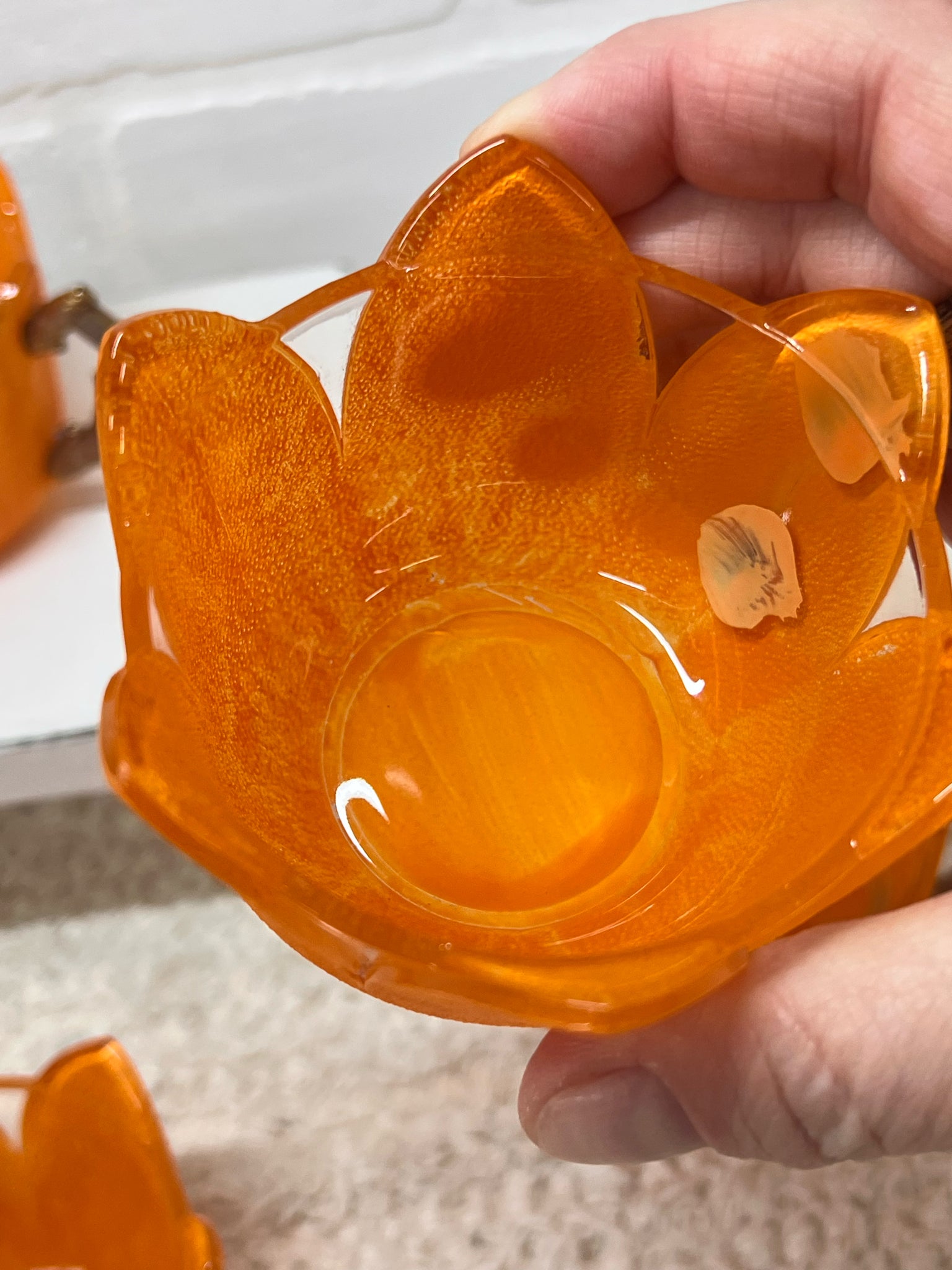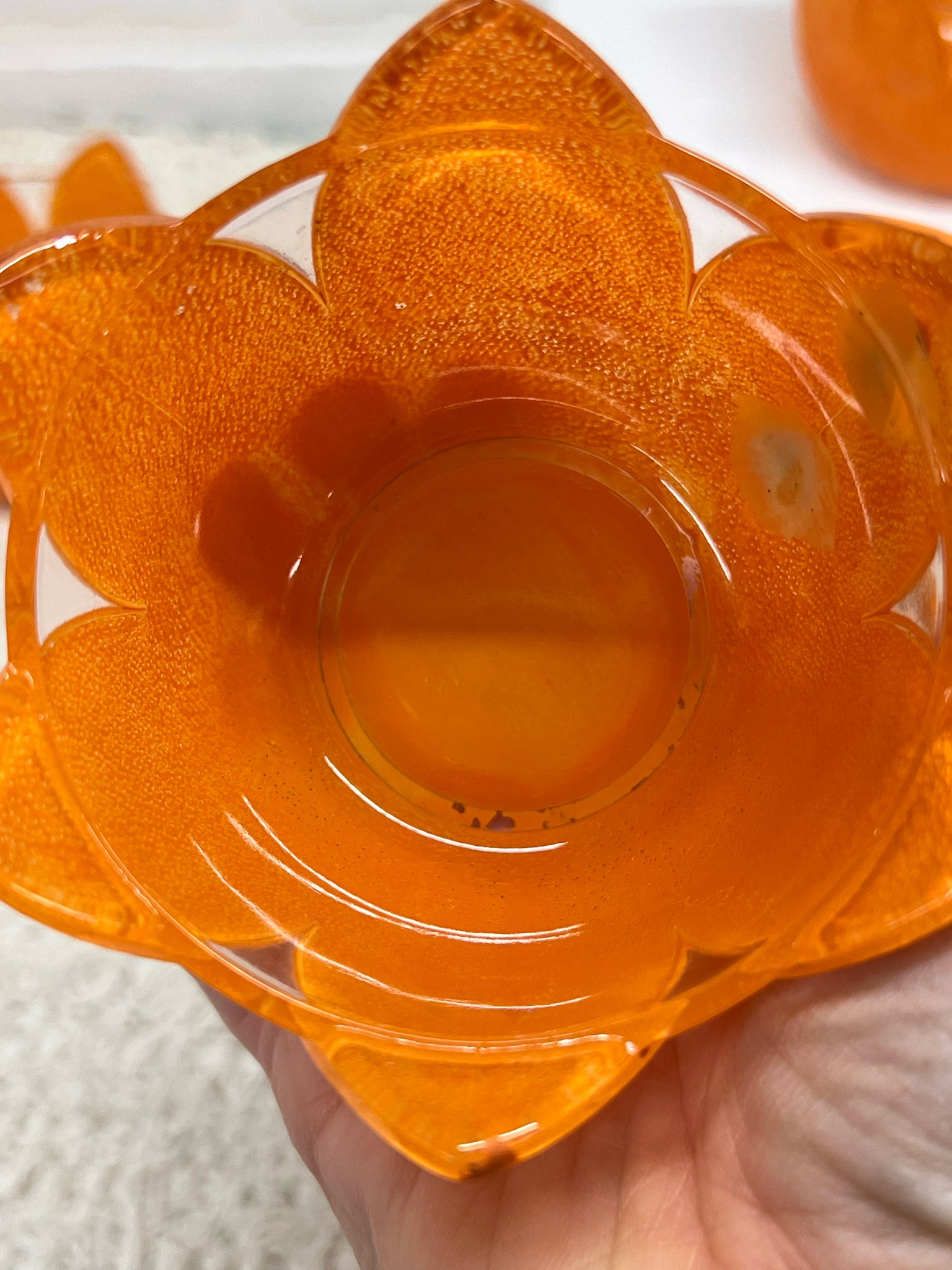 Set of 6 antique punch cups painted to look like oranges peeled back. Gold painted branch shaped glass handles. So delicate and amazing! Overall very good antique condition with slight paint loss. Bring back punch parties with this stunning set!