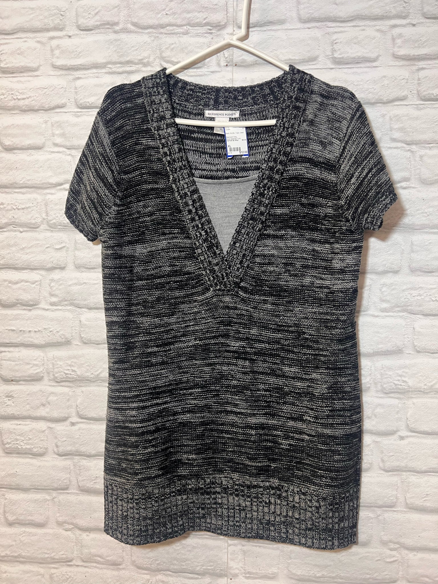 Black and Gray Short-Sleeved Tunic Sweater