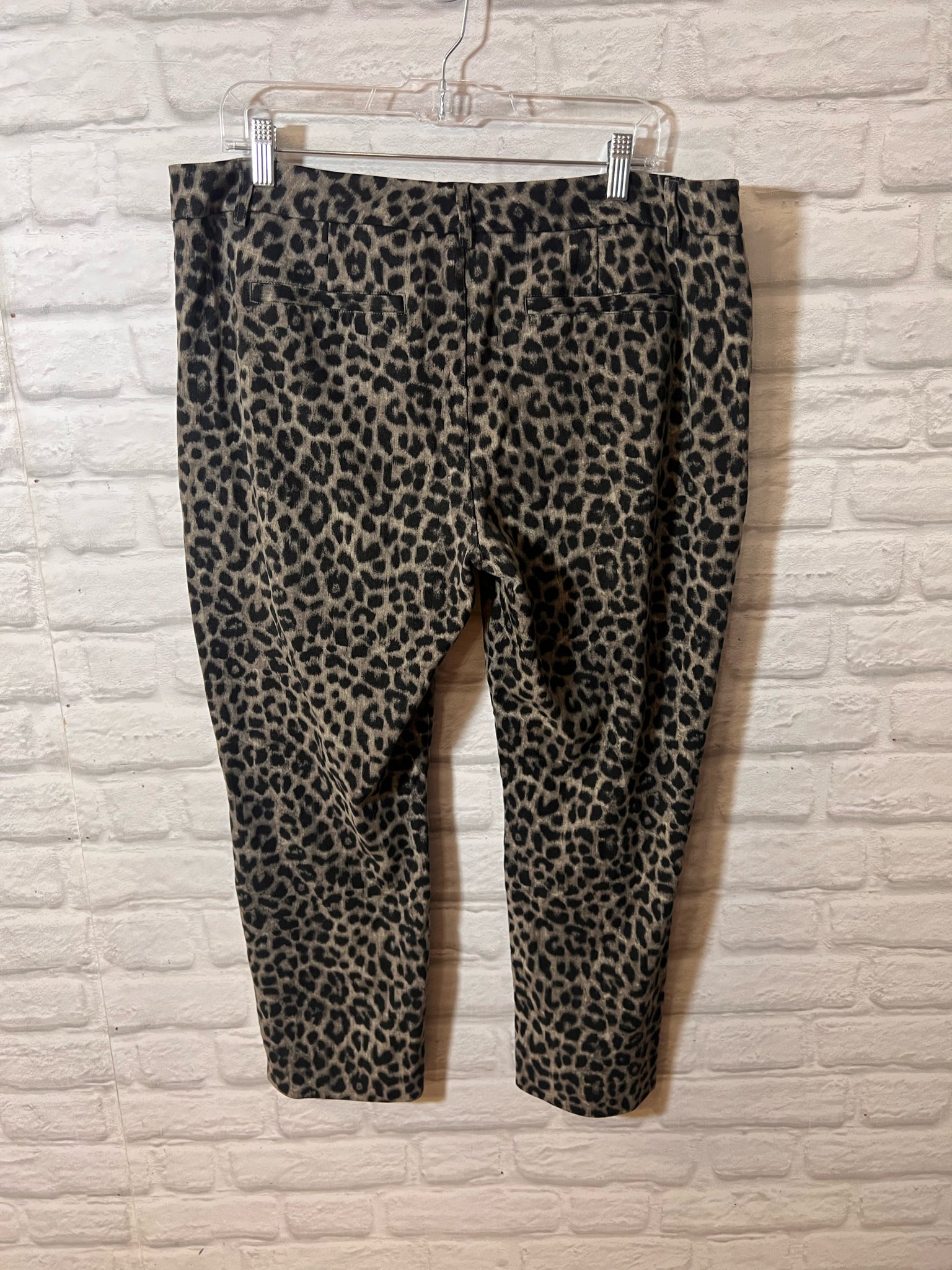 CAbi cropped length (25" inseam) dress pants in leopard print. Zipper and top button closure.