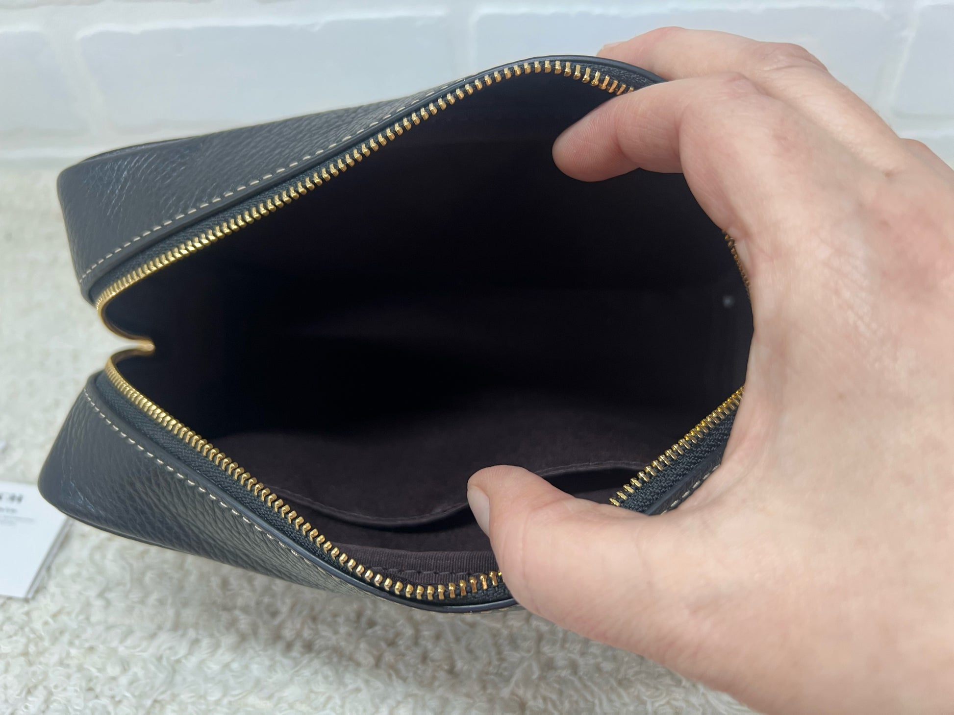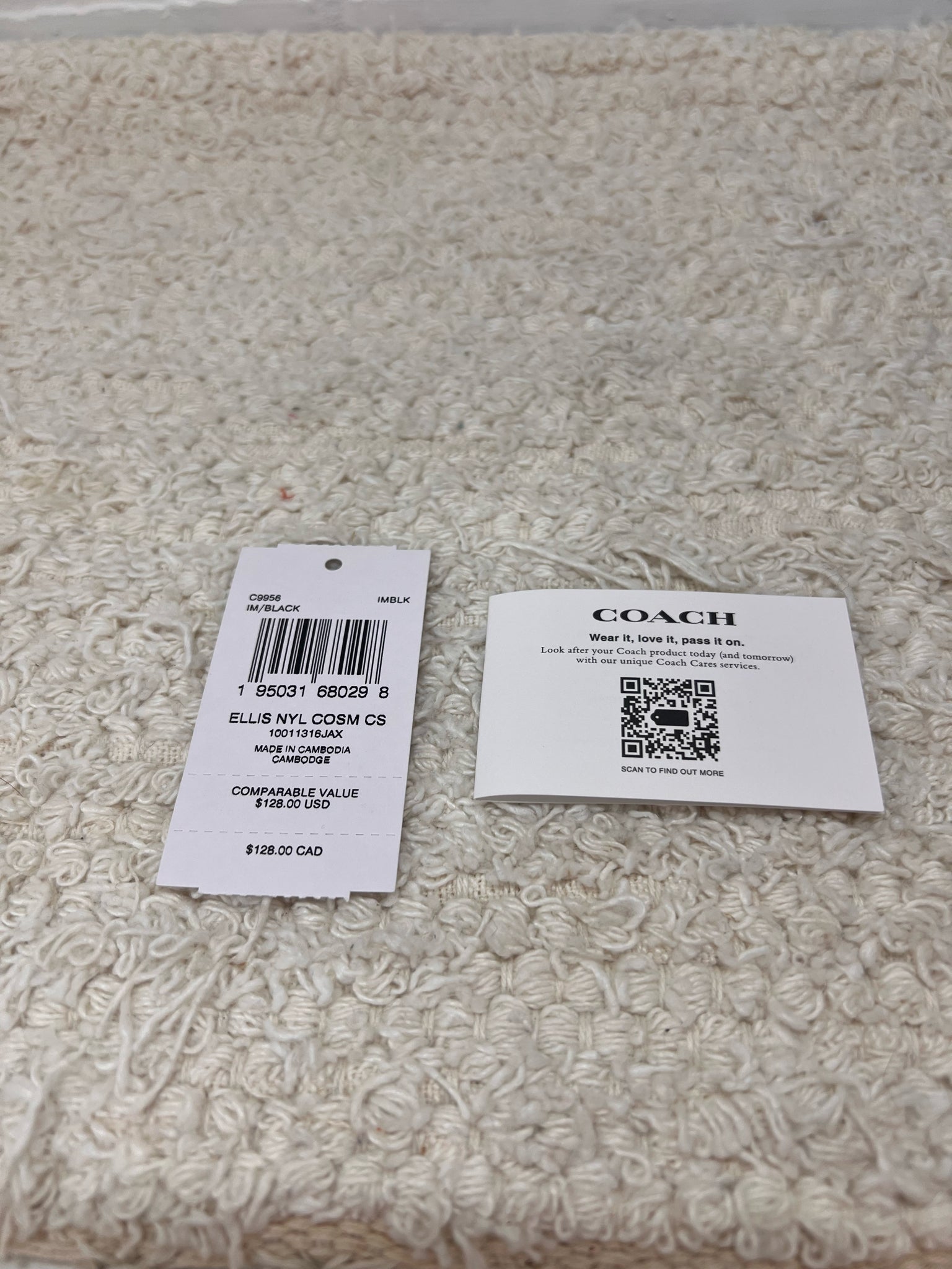 The Ellis Bag - Zipper pouch cosmetic/travel case from Coach. New, hardware still wrapped. Retailed for $128. Measures 8x3x5 inches. Fabric Lining.