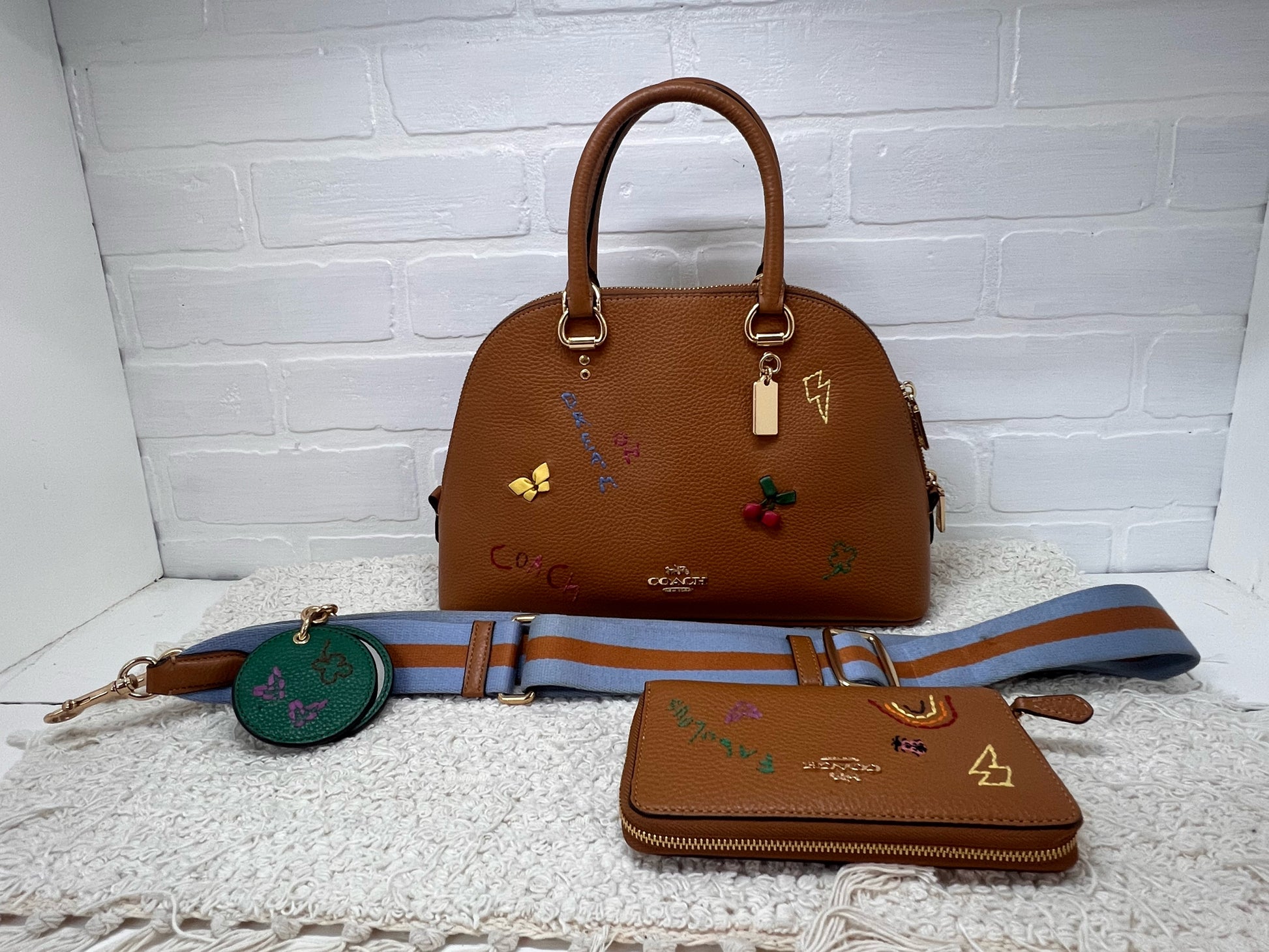 Coach Leather Katy Satchel w/ Diary Embroidery & Coordinating Wallet