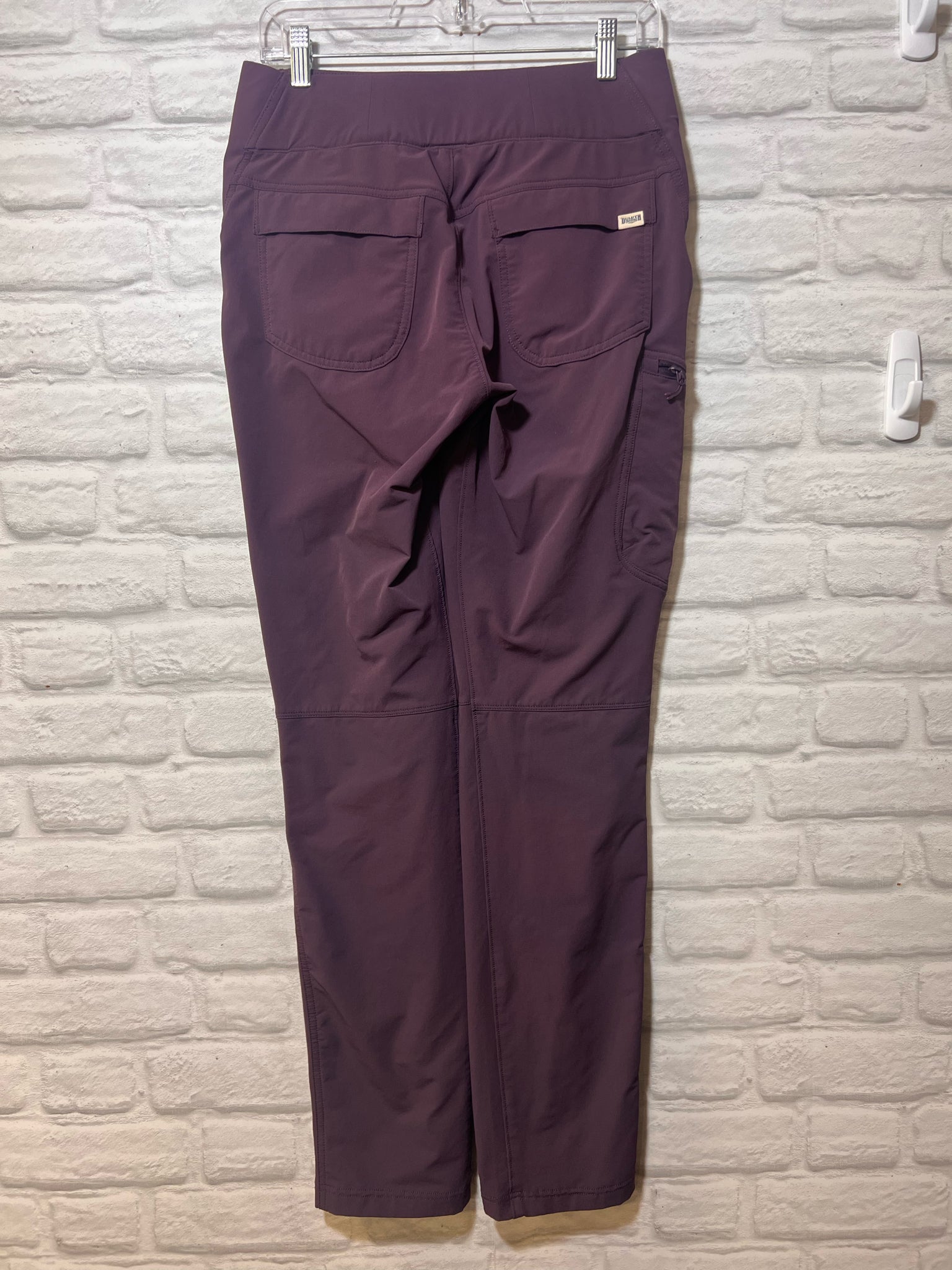 Eggplant purple in color, amazing pants for hiking or travel. Lots of pockets to stash your gear, flexible with abrasion resistant stretch. Good used condition w/ previous owners initials in marker on tag. Tiny snag on front. 33" inseam.