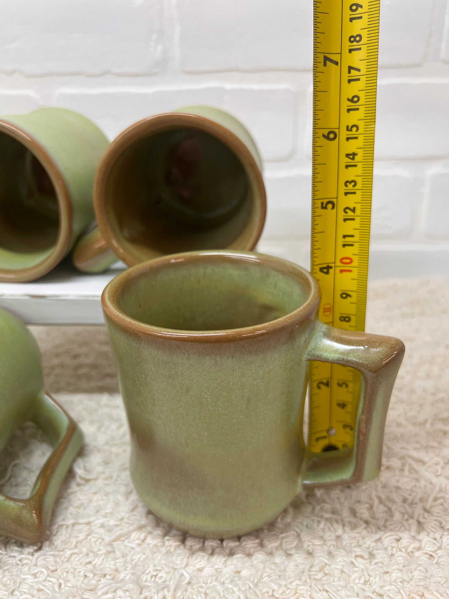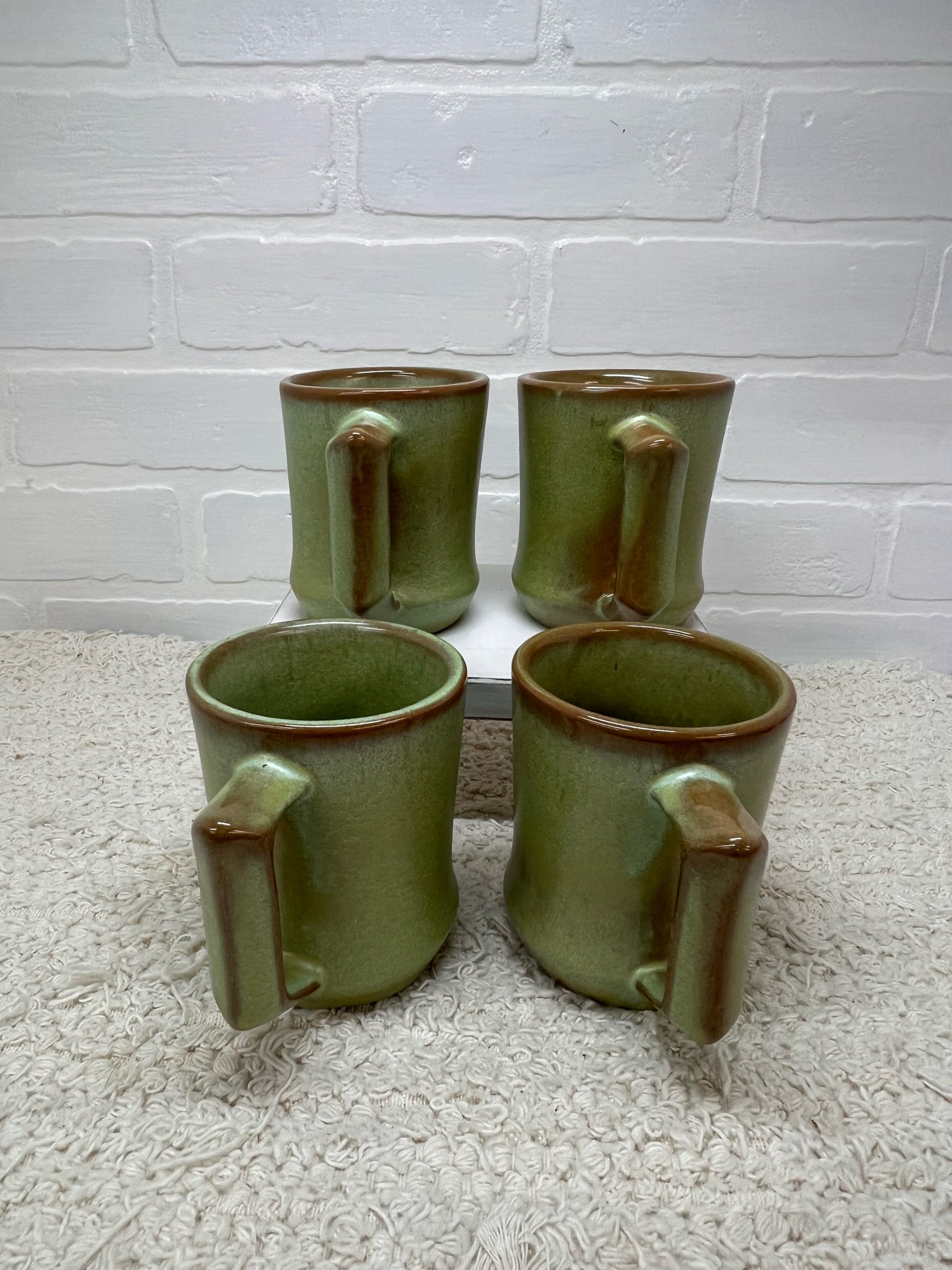 Set of 4 green & brown glazed Frankoma mugs. Stamped C5, appear unused. Add a touch of green beauty to your next coffee break!