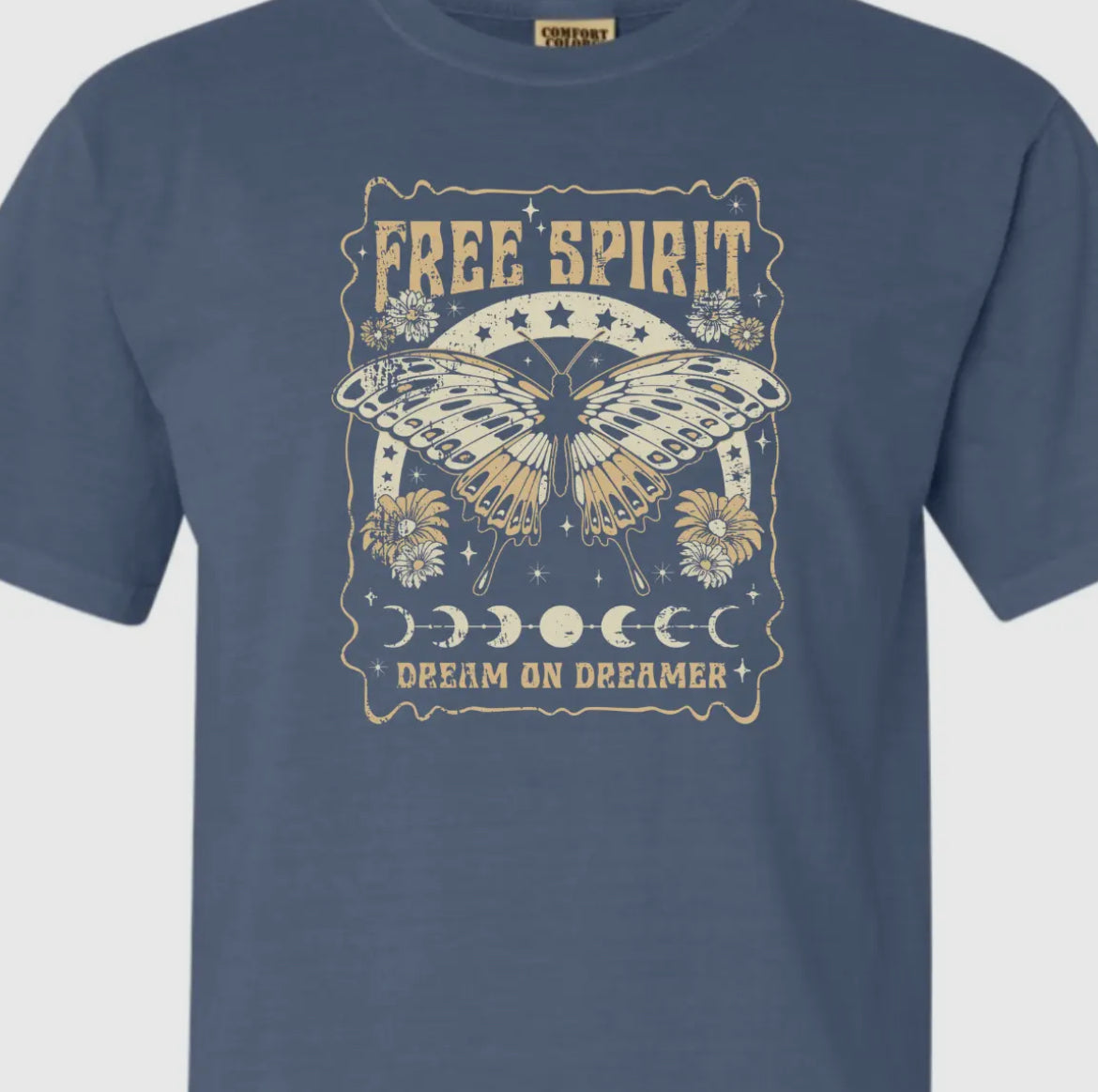 Free Spirit Comfort Colors Graphic T-Shirt - Pepper or Denim Blue