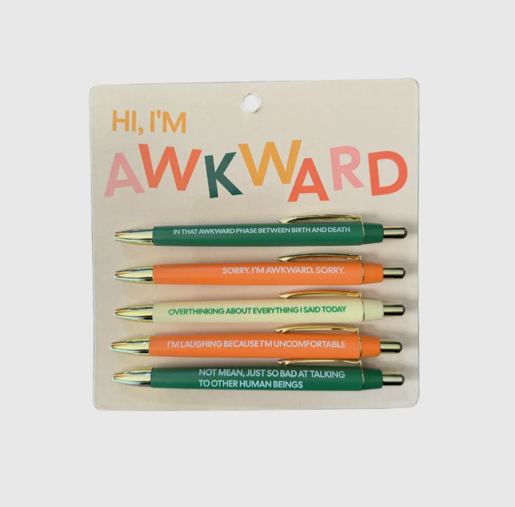 Stock your desk with funny pens! These pen sets are sure to add a touch of humor to your day. Great stocking stuffer, birthday gift, or gift for yourself! Each set contains five ball point pens that write in black ink. These would pair nicely with our Denik notebooks!