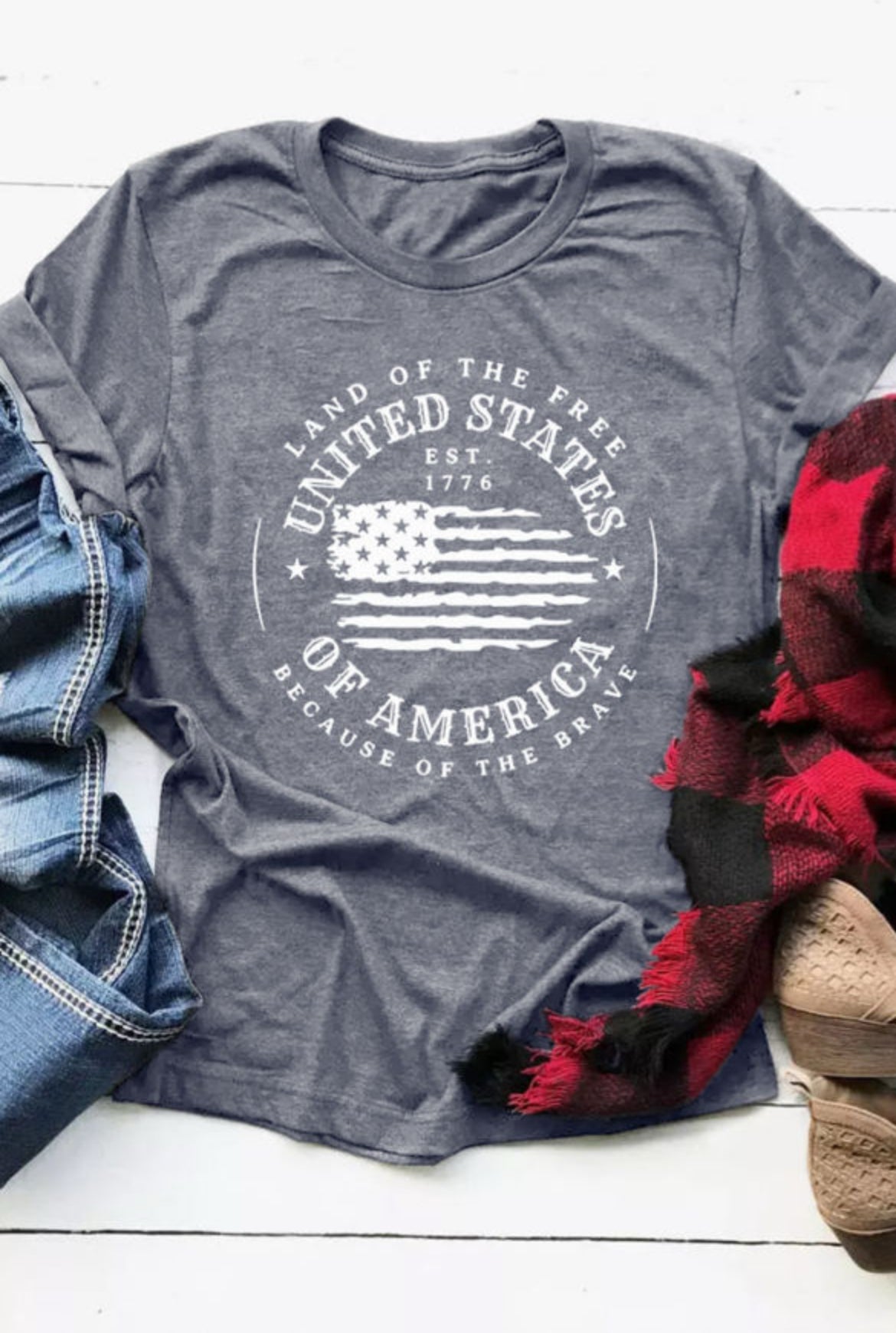 Not just for the 4th of July! This patriotic tee can be worn all year round. Scoop neck, short sleeved, soft and comfortable.