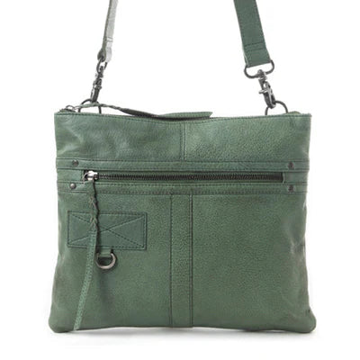 Elevate your style with this olive leather crossbody. Featuring military-inspired details, brushed hardware, multiple zip compartments, and an adjustable strap, it’s the perfect blend of function and edge for everyday adventures.