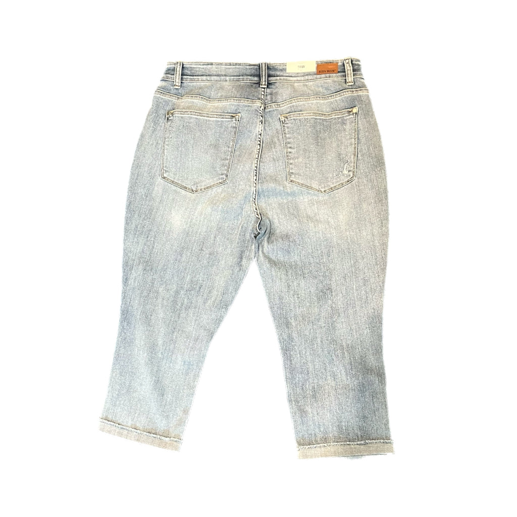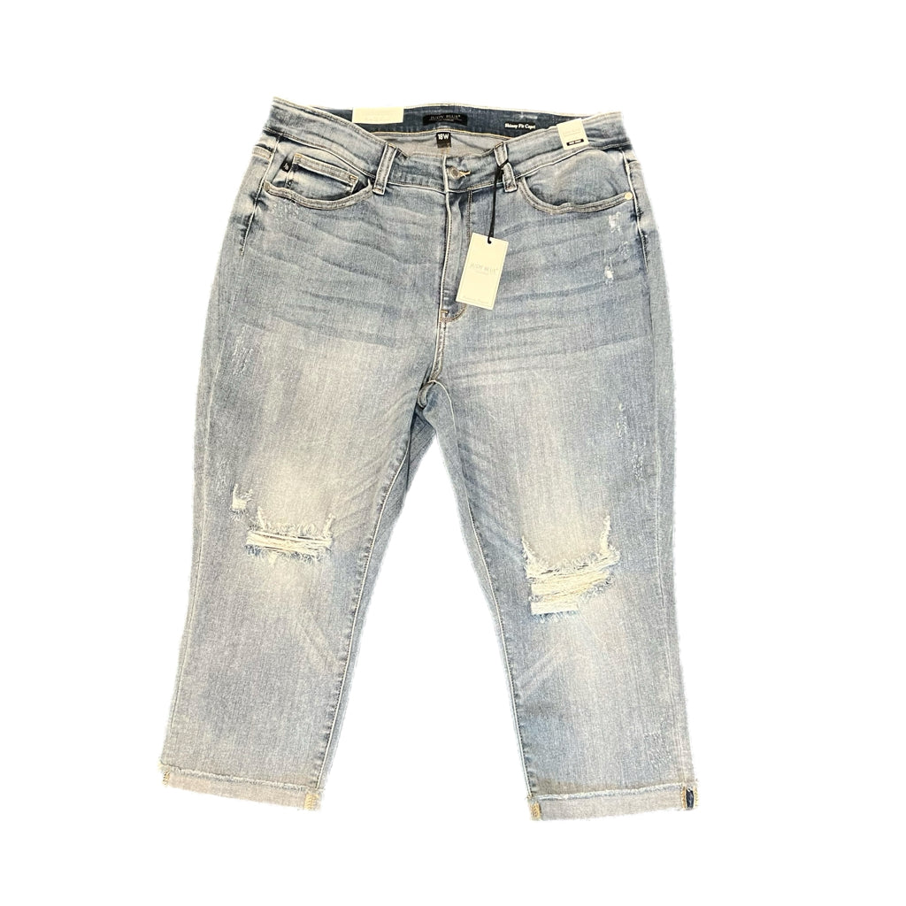 Distressed denim- need we say more? These mid-rise capris from Judy Blue are skinny fit, light blue and incredibly comfortable!