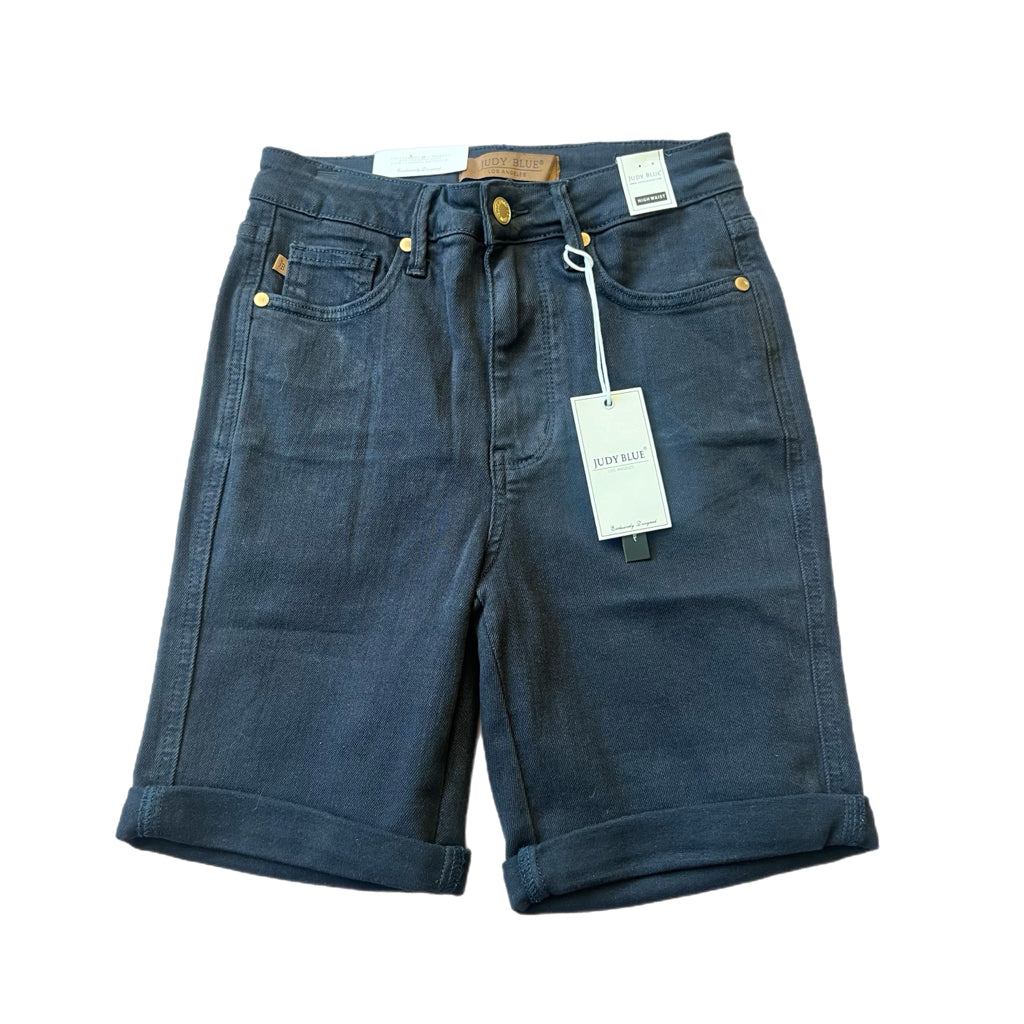 A must have this summer! These Judy Blue Bermuda shorts come in navy blue, and feature the often asked for tummy control panel.