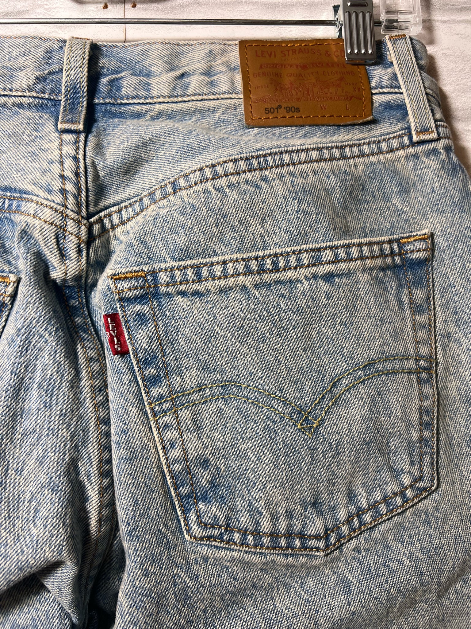 Levi's Premium 90's Fit 501 Jeans - this is the reissue of that popular 90's fit in a light stone washed denim - 100% cotton - button fly, 30" inseam