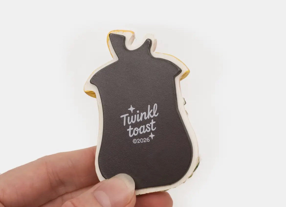 Sculpted in resin and hand painted, this bright, glossy magnet is a nod to the 1970's Merry Mushroom canister set. Measures 2.75 by 1.75 by 5/8 inches.