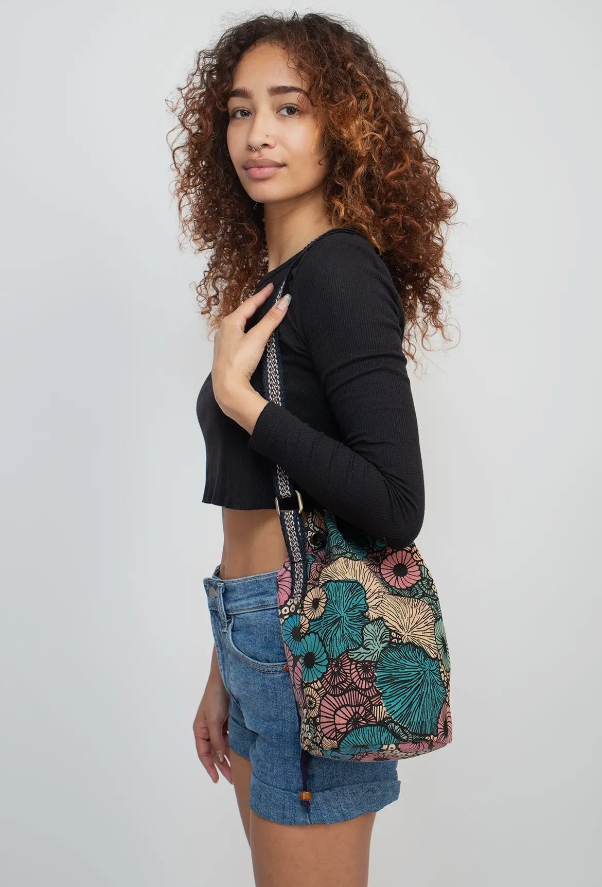 Mini Cotton Hobo Bag - Blue Mushroom Print