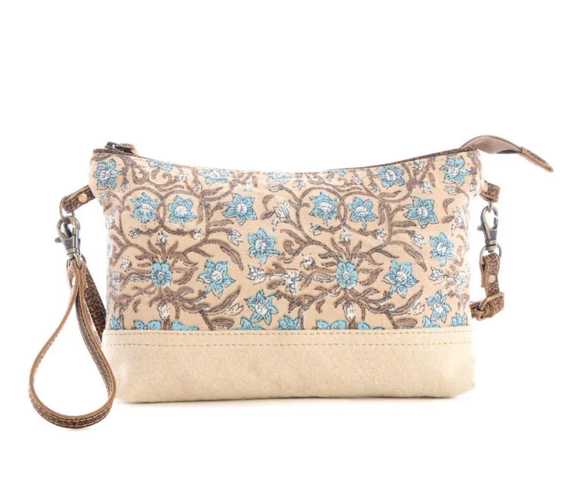 Myra Bag San Ysidro Falls Small & Crossbody Bag – Floral Canvas & Leather Wristlet Purse with Adjustable Strap and Zipper Pocket, 10.5"x6", Women’s Boho Bag