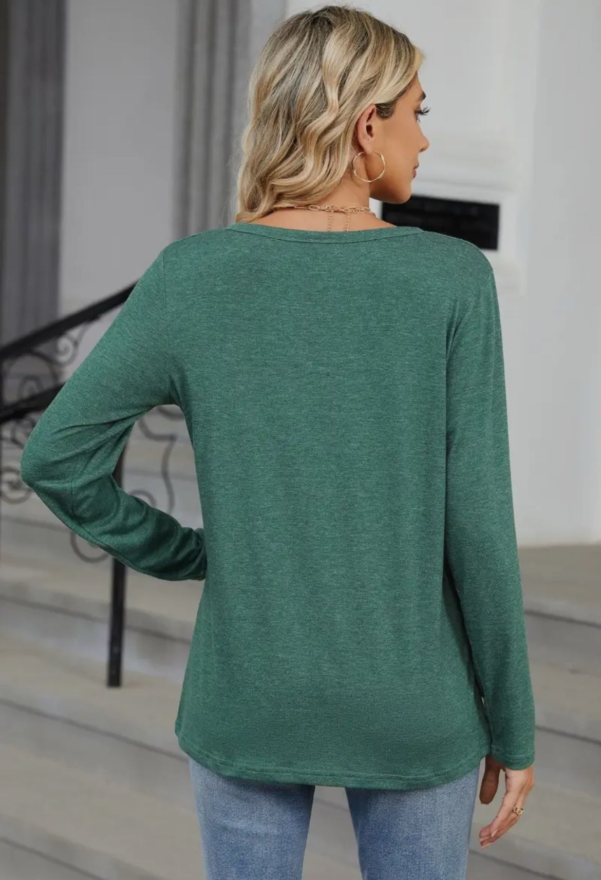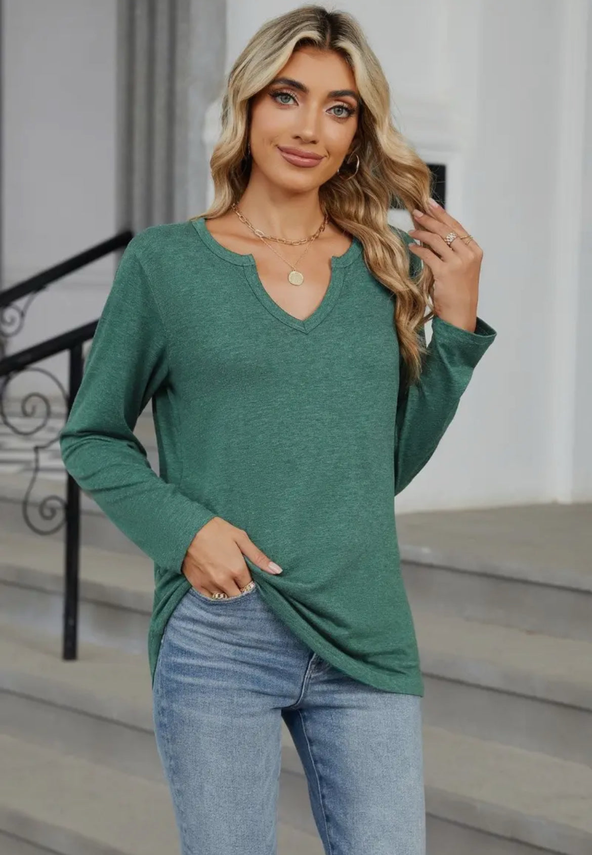 A loose fitting casual top from Ninexis. Long sleeves, notched neckline, great shade of dark green.