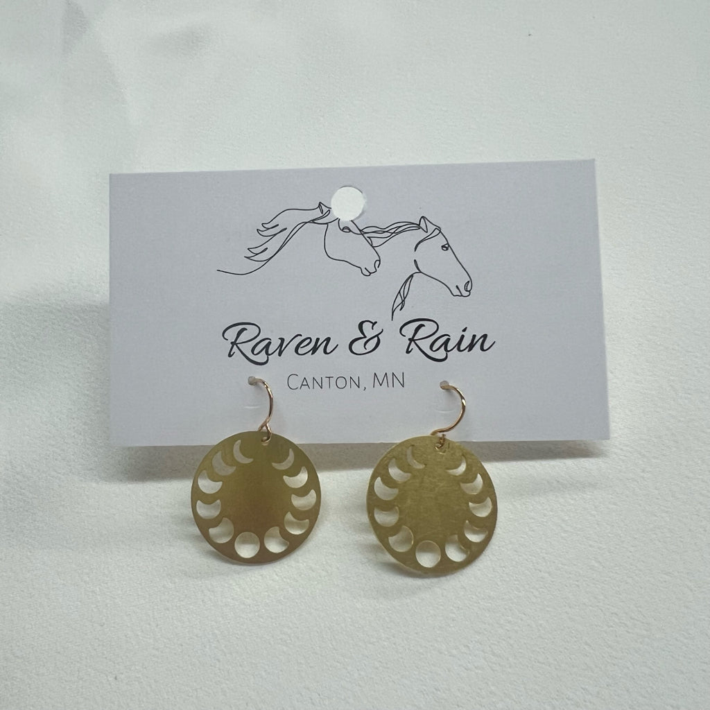 Raven & Rain Moon Phase Brass Earrings