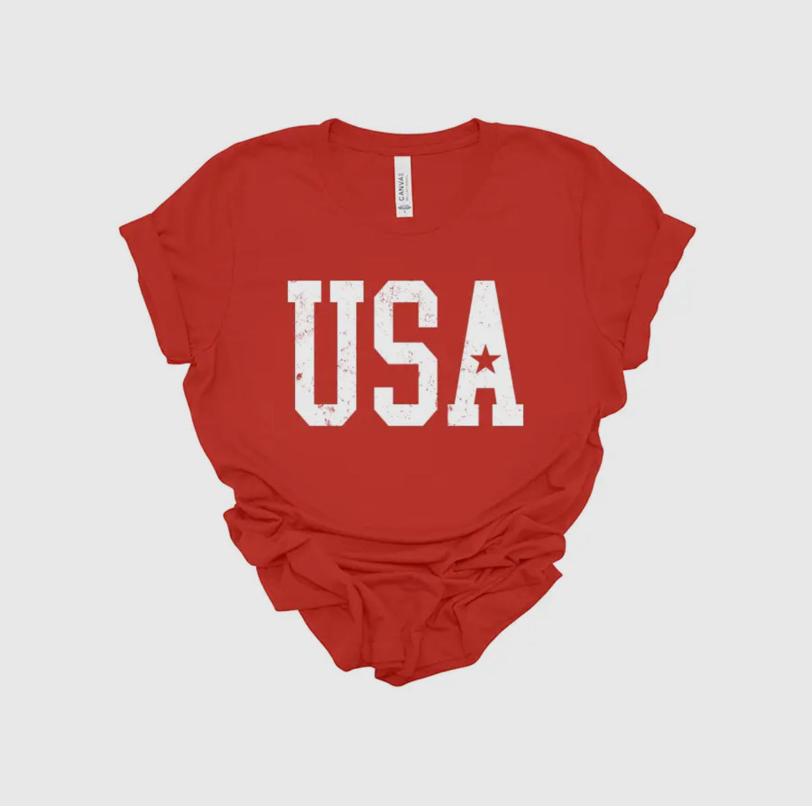 USA! This bright red shirt is printed in the USA on Bella Canvas soft airlume combed ring spun cotton. A great summer tee.
