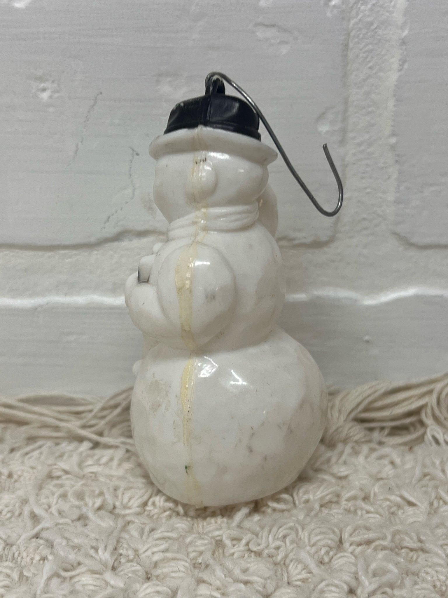 Vintage Rosbro plastics hard plastic Frosty the Snowman ornament. Mid-century holiday goodness right here! This little cuties measures approx 3" tall and is like a teeny little Christmas blowmold, only in ornament form.