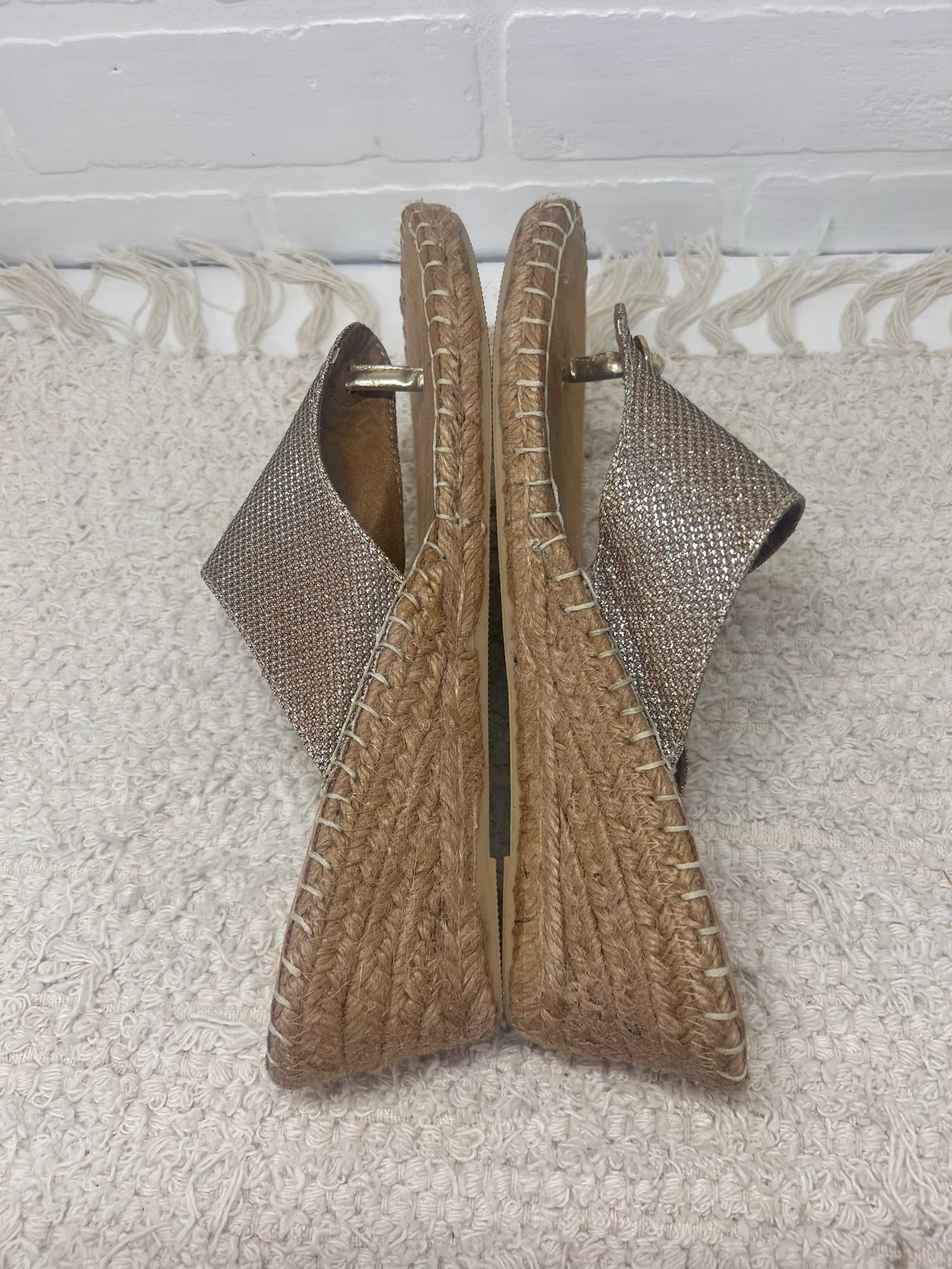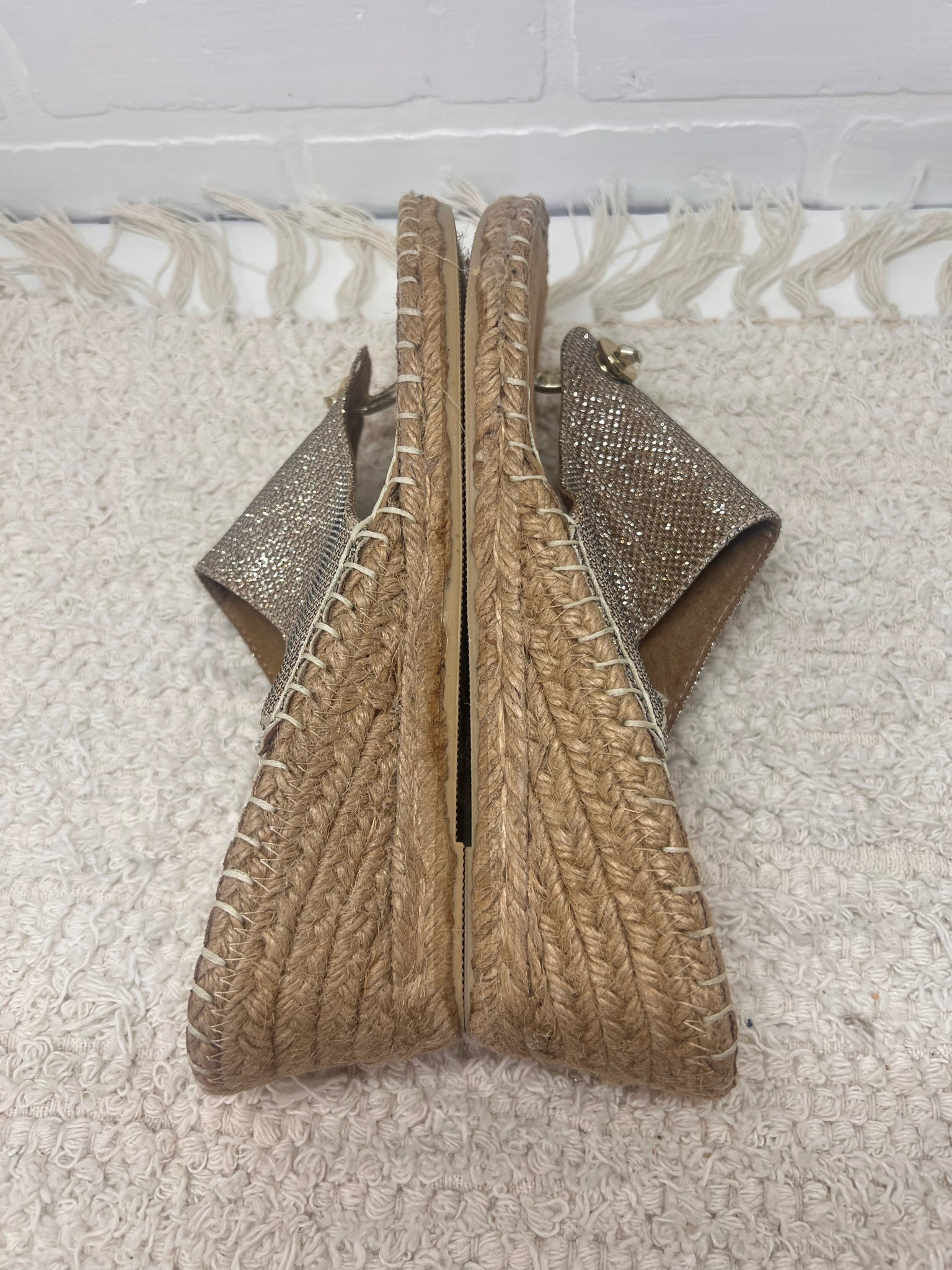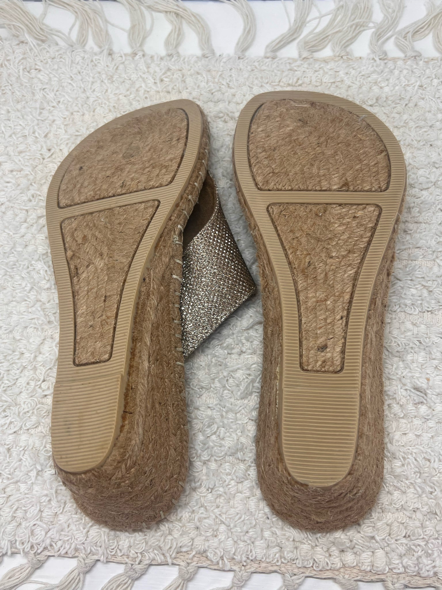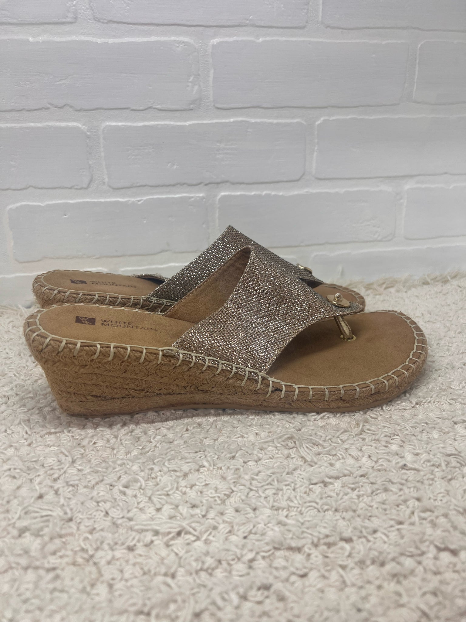 White Mountain thong espadrille sandals with a 2.5" wedge heel and gold glittery fabric upper