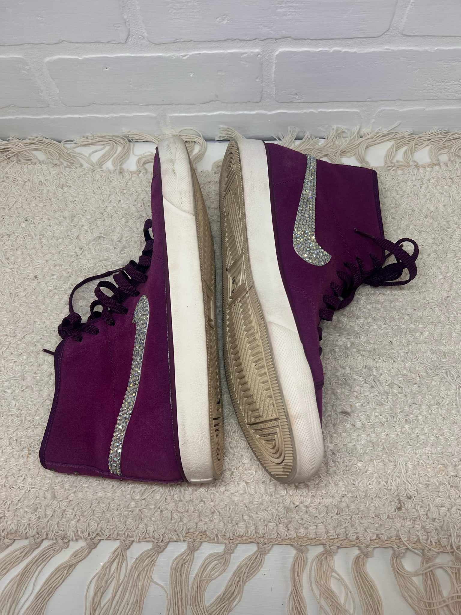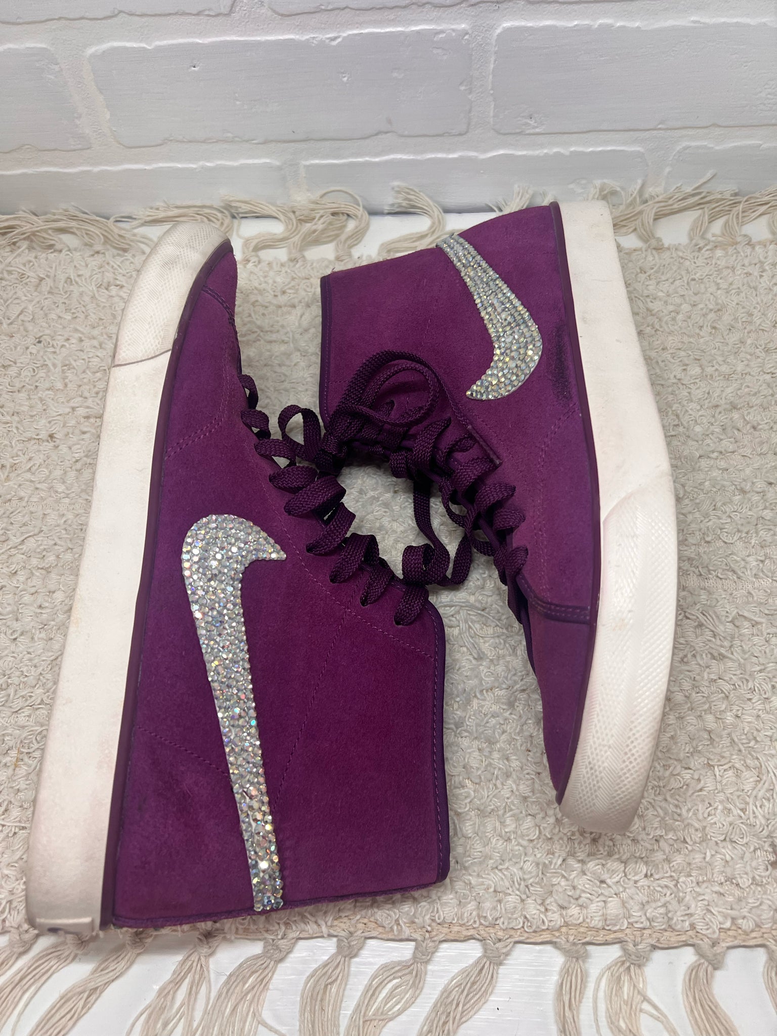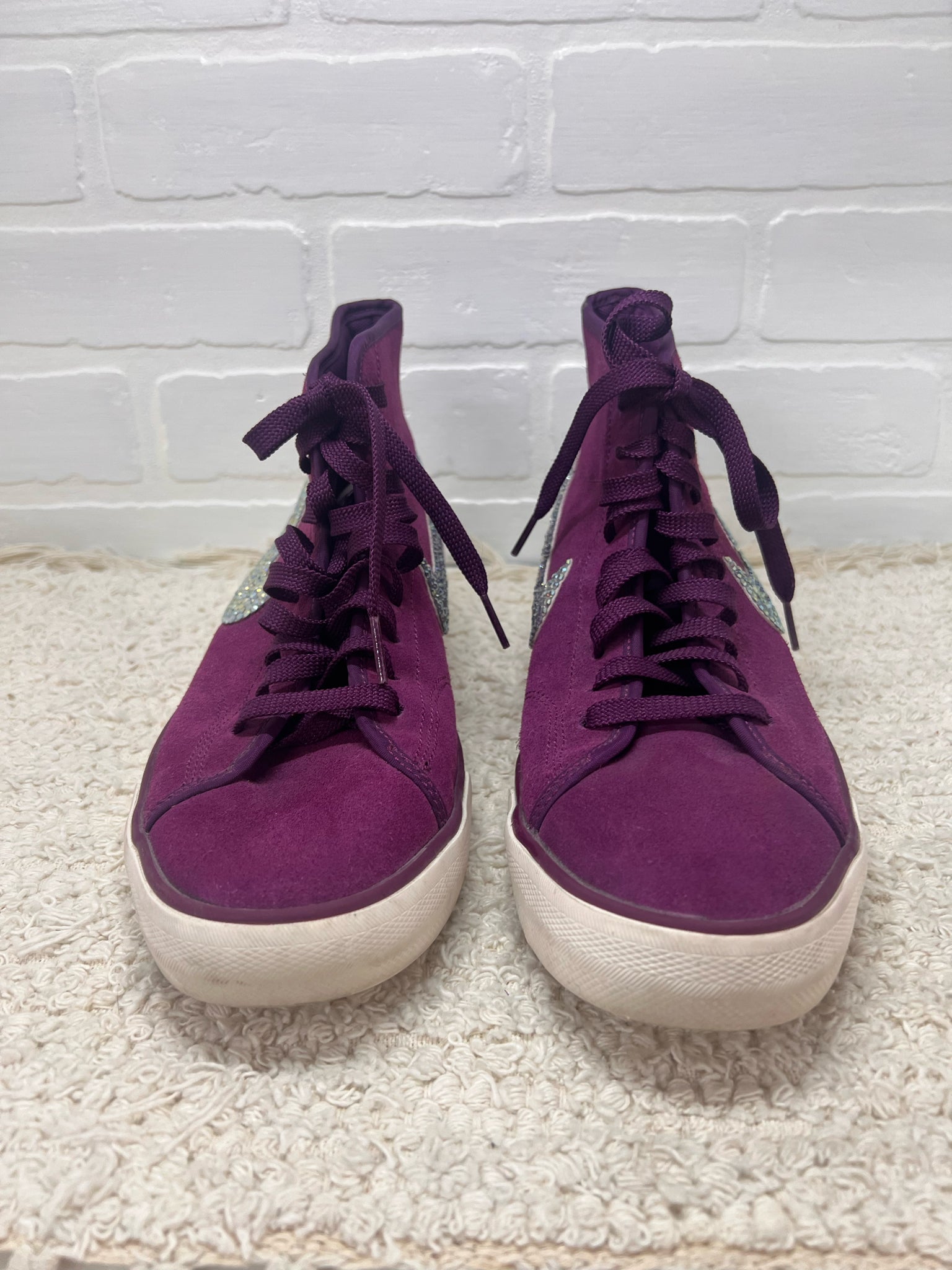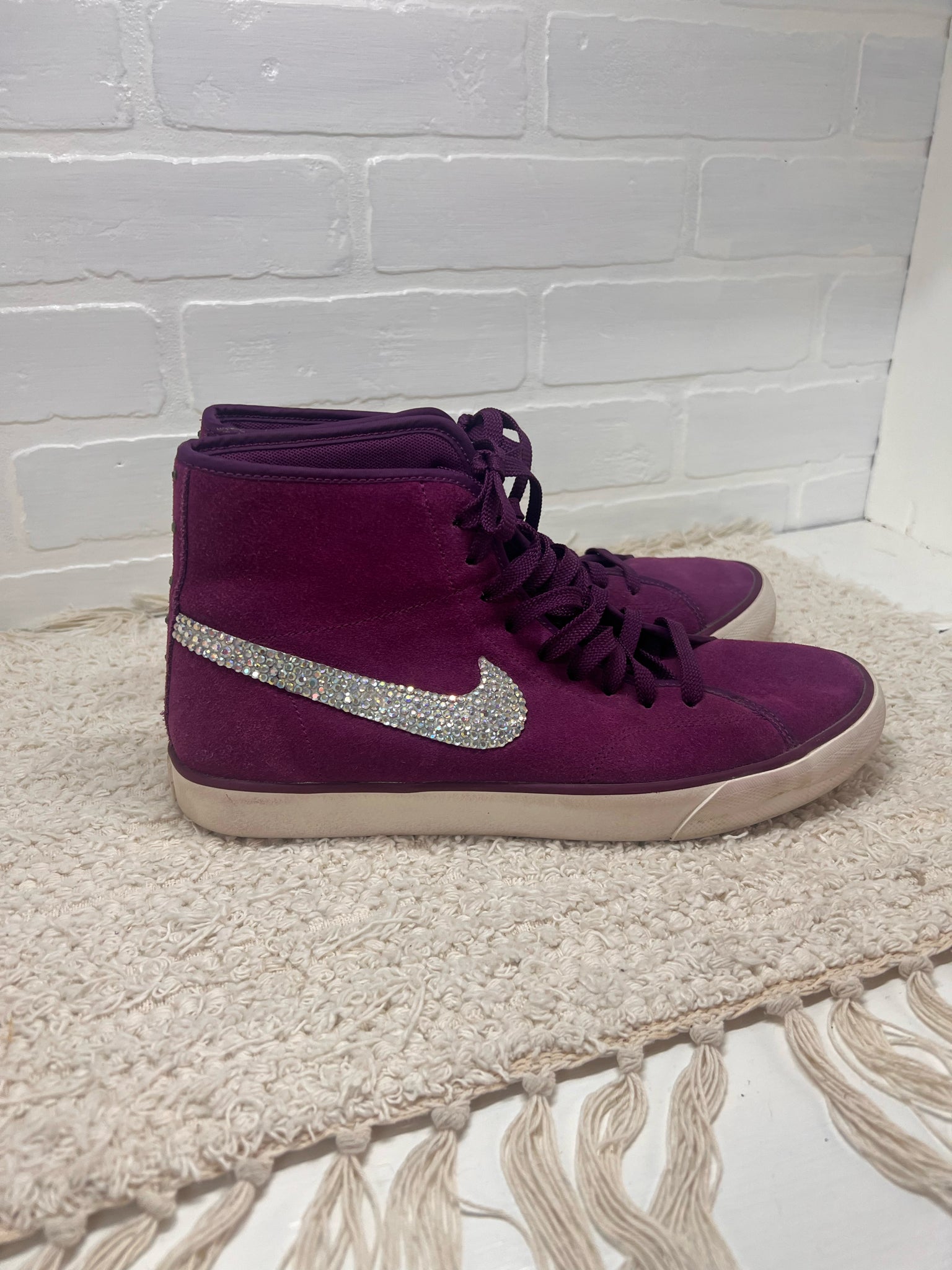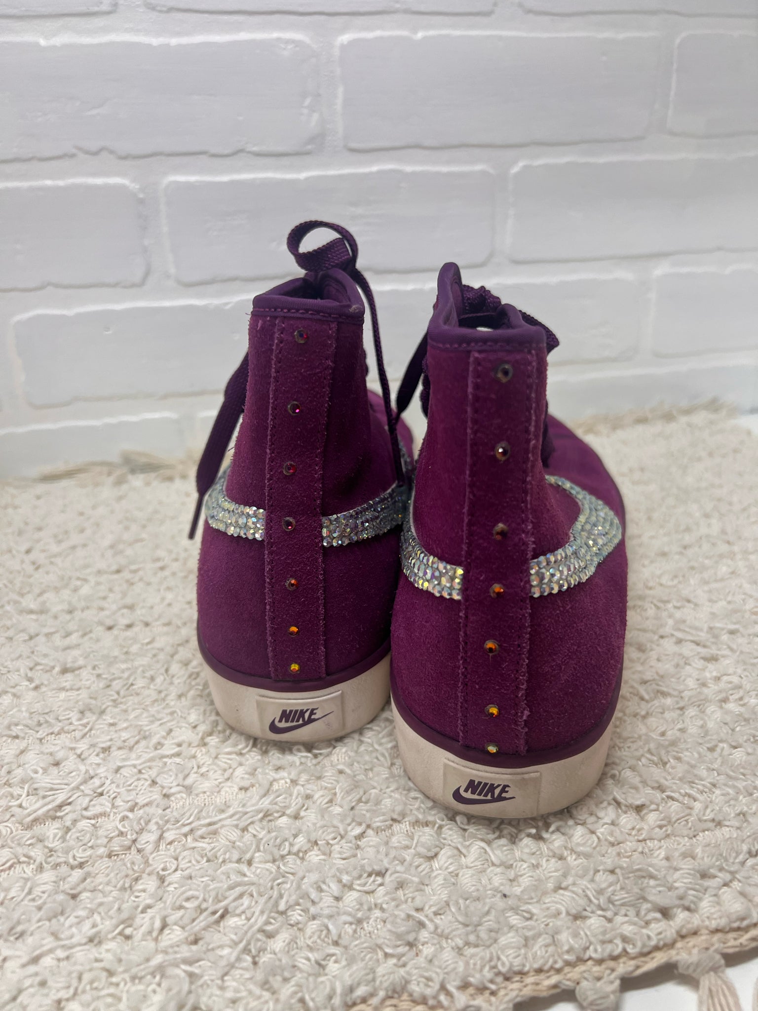 Nike Women's Primo Court shoes in purple (mulberry) suede with bedazzled swoosh logo - mid-high tops