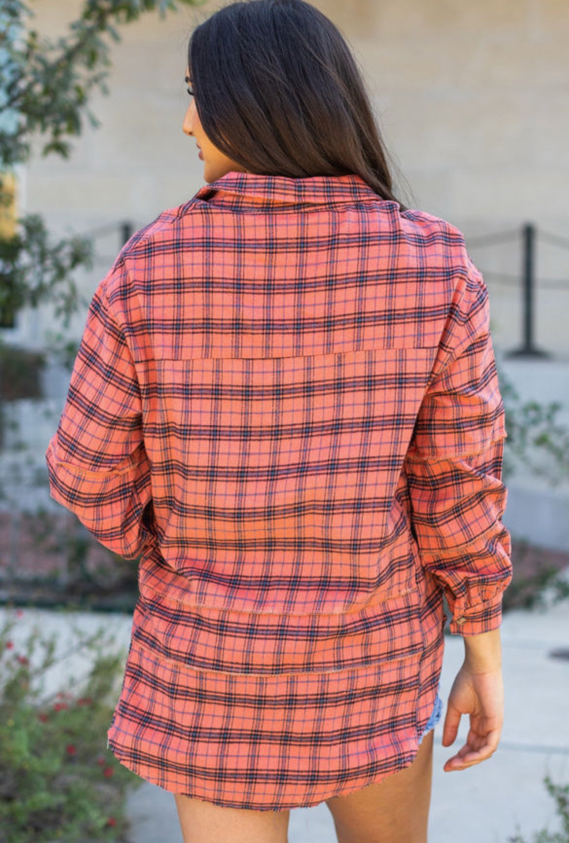 Side Split Distressed Hem Plaid Shirts - Multiple Color Options