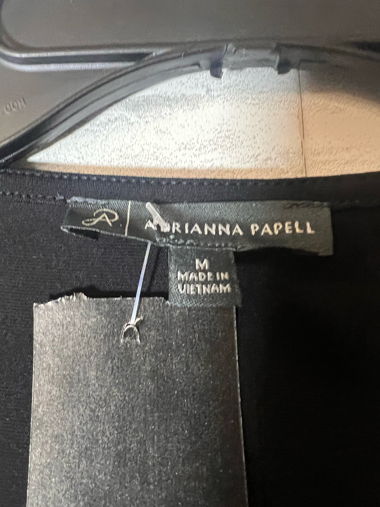 Black long sleeved top w/ side ruching on both sides, plus a fold over front flap for a nice drape fit