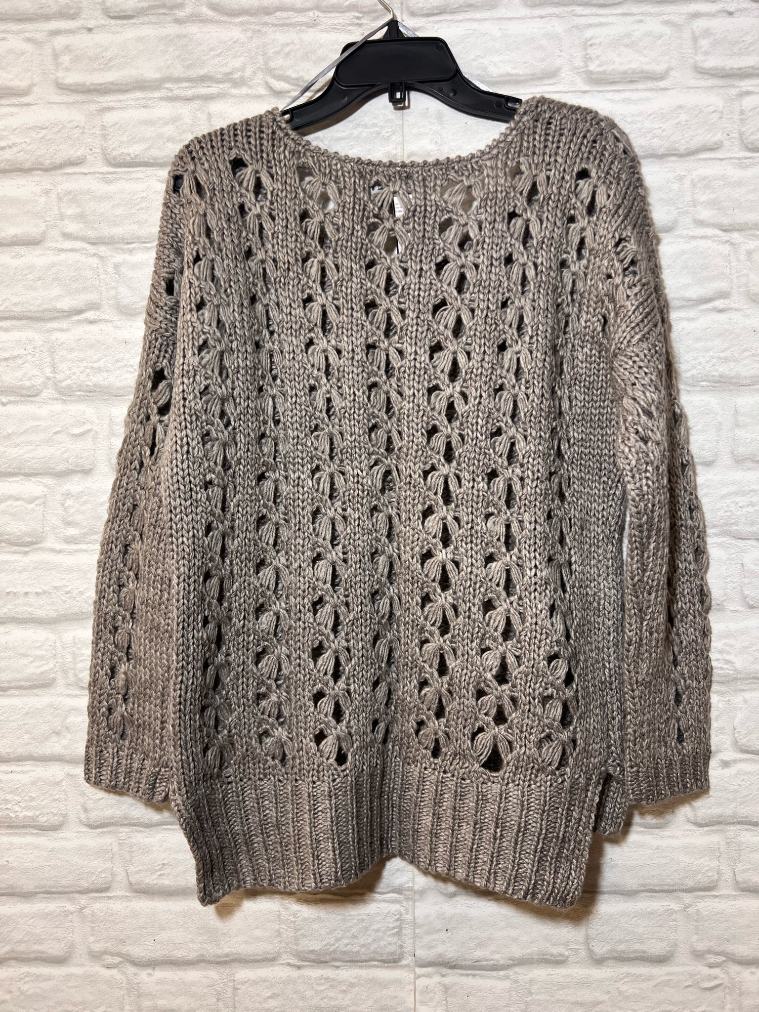 Size M Sisters Open Knit Acrylic/Wood Blend Gray Sweater