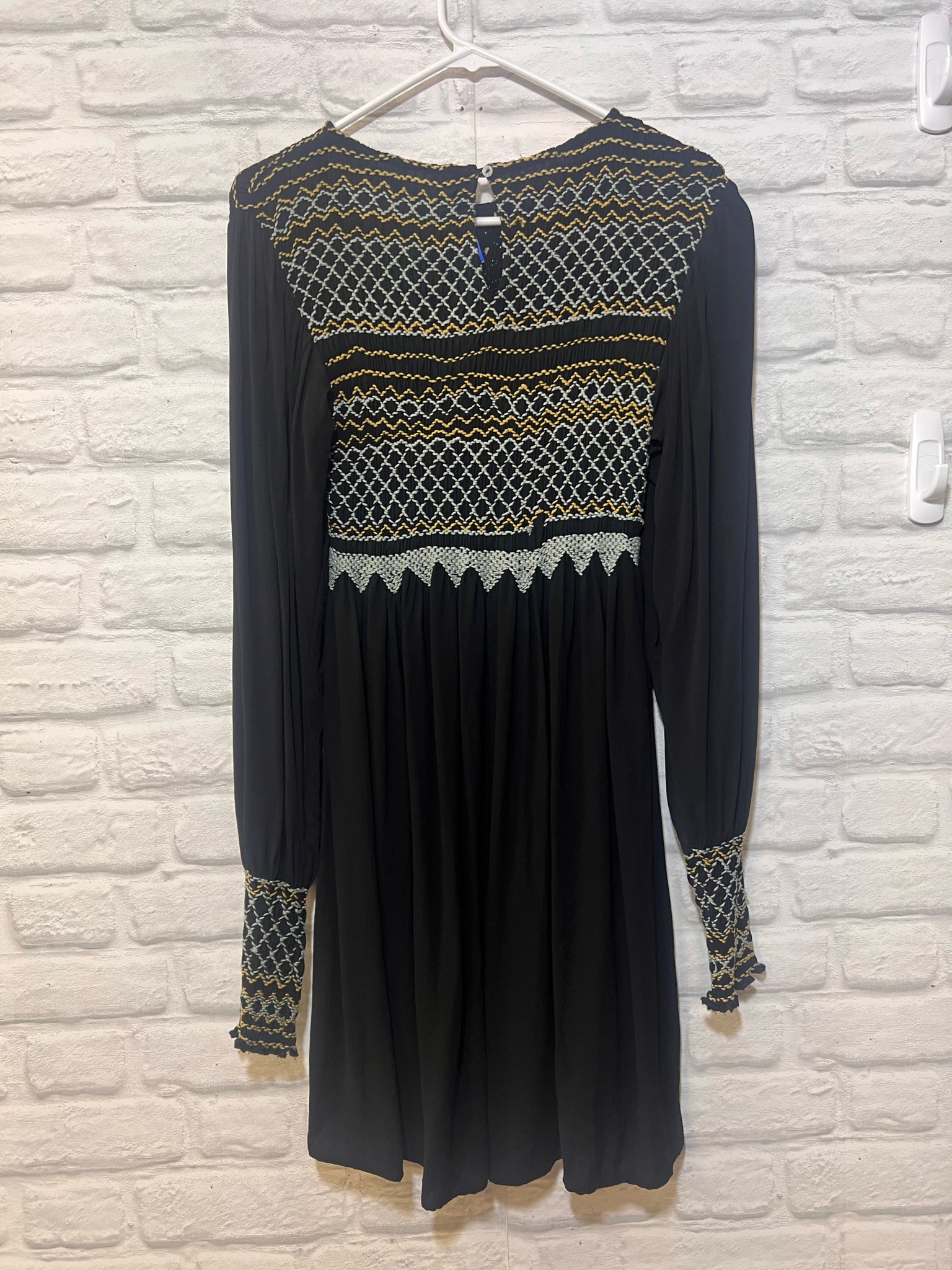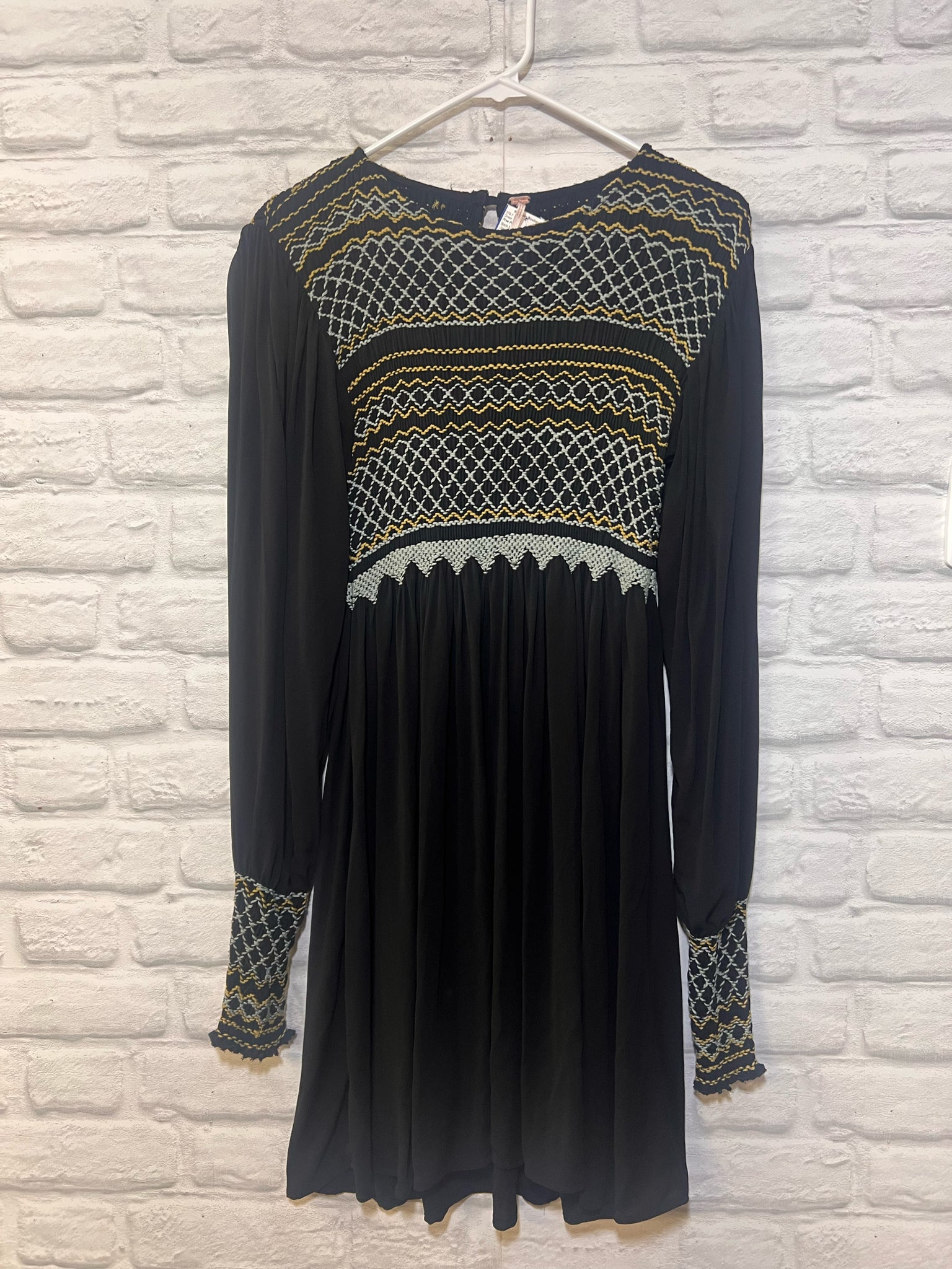 Black long sleeved dress from Free People - very boho. Multicolored embroidery/smocking on the bidich and cuffs. Too cute!