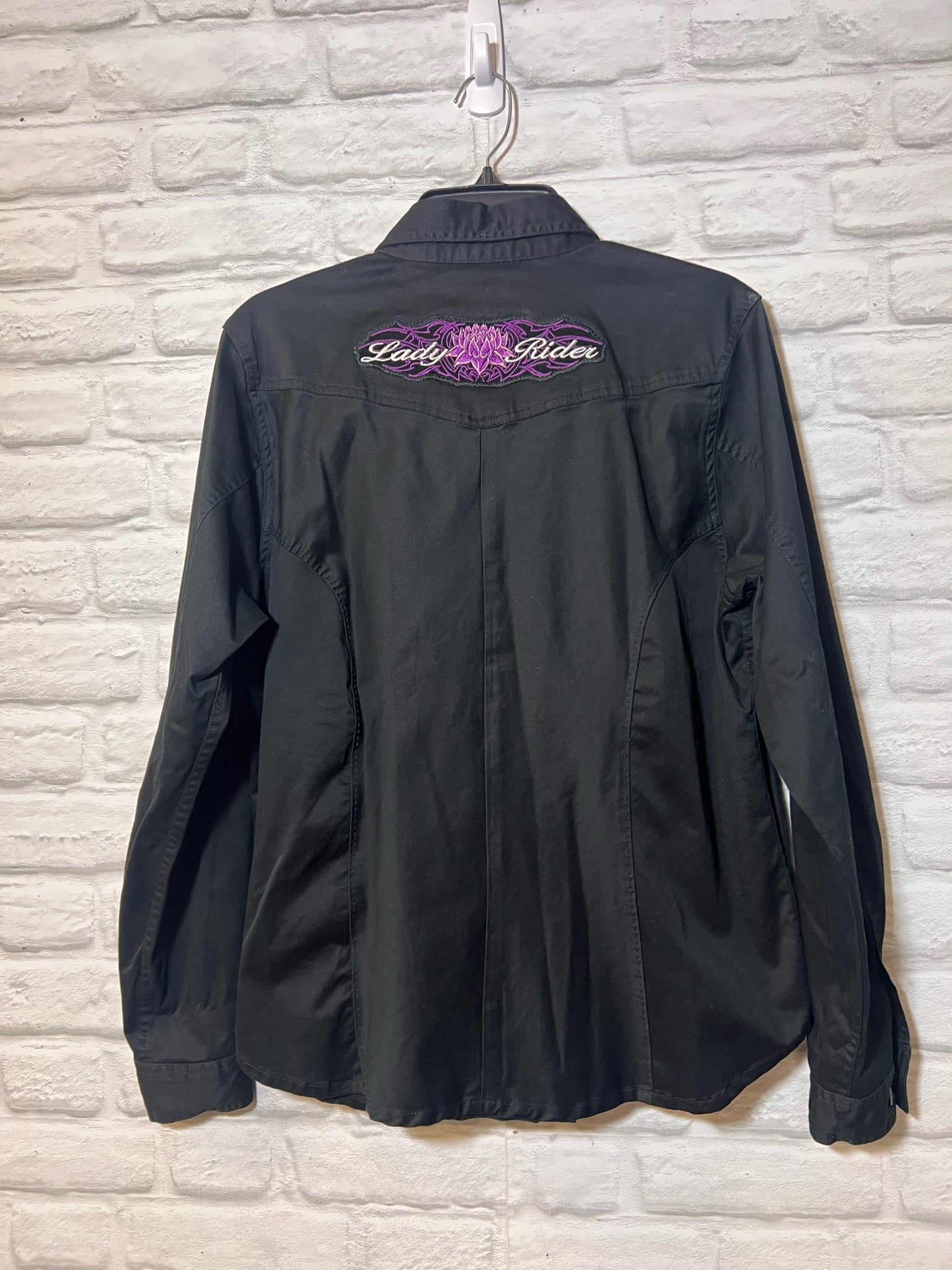 Ladies' HD shirt, 100% cotton, embroidery detail on chest and 'Lady Rider' patch on back