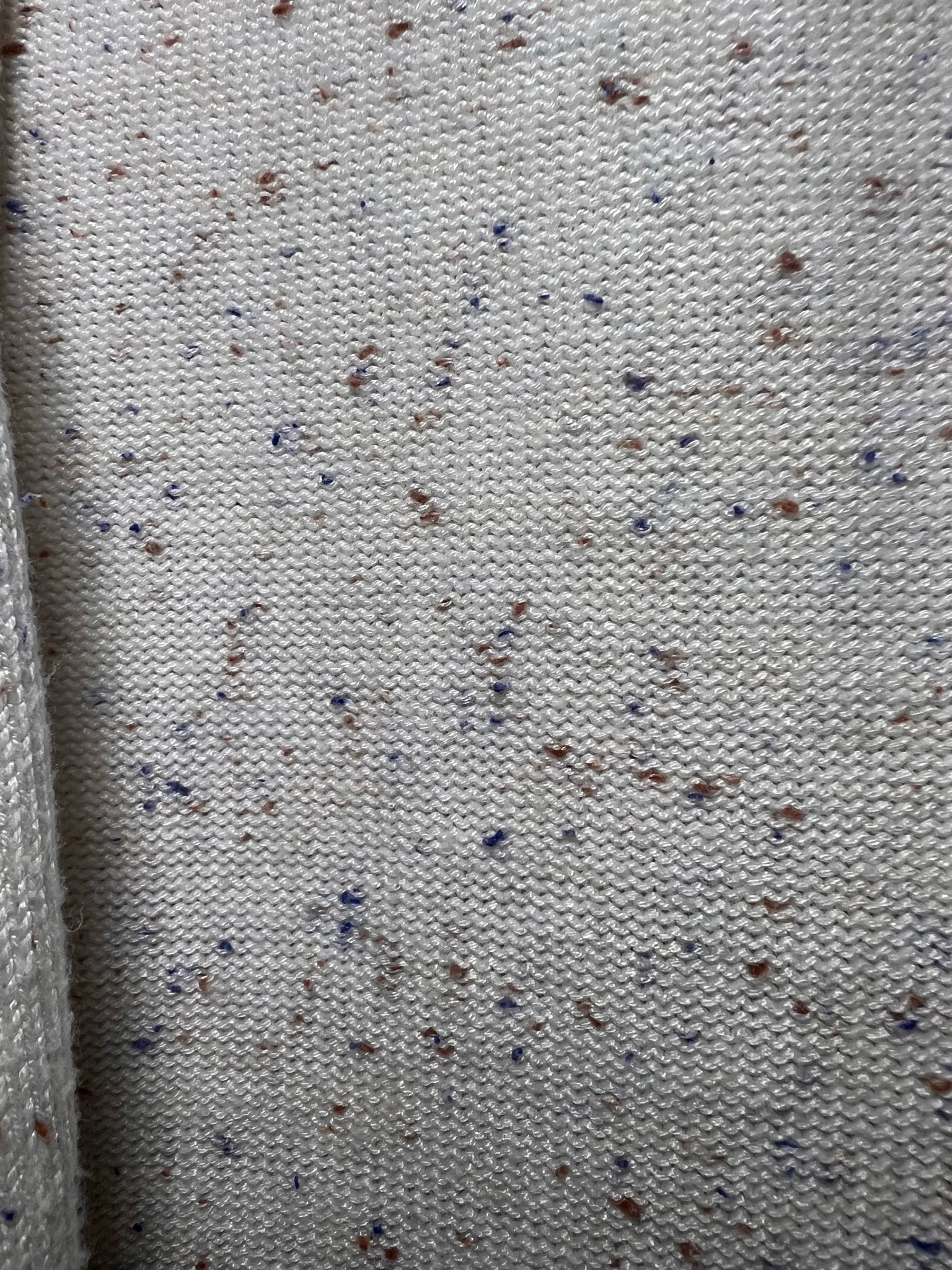 Lighter weight open style cardigan in white with small multicolor confetti flecks throughout.