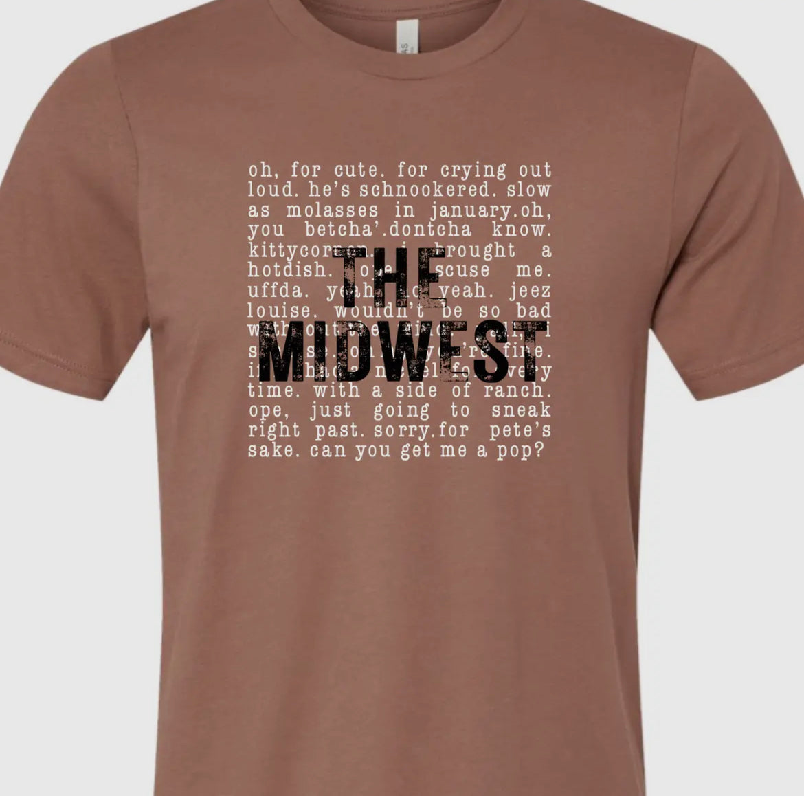 Ope, just going to sneak right past ya there! This shirt celebrates all things Midwest-y. Now in Mauve and Purple Storm for color options!