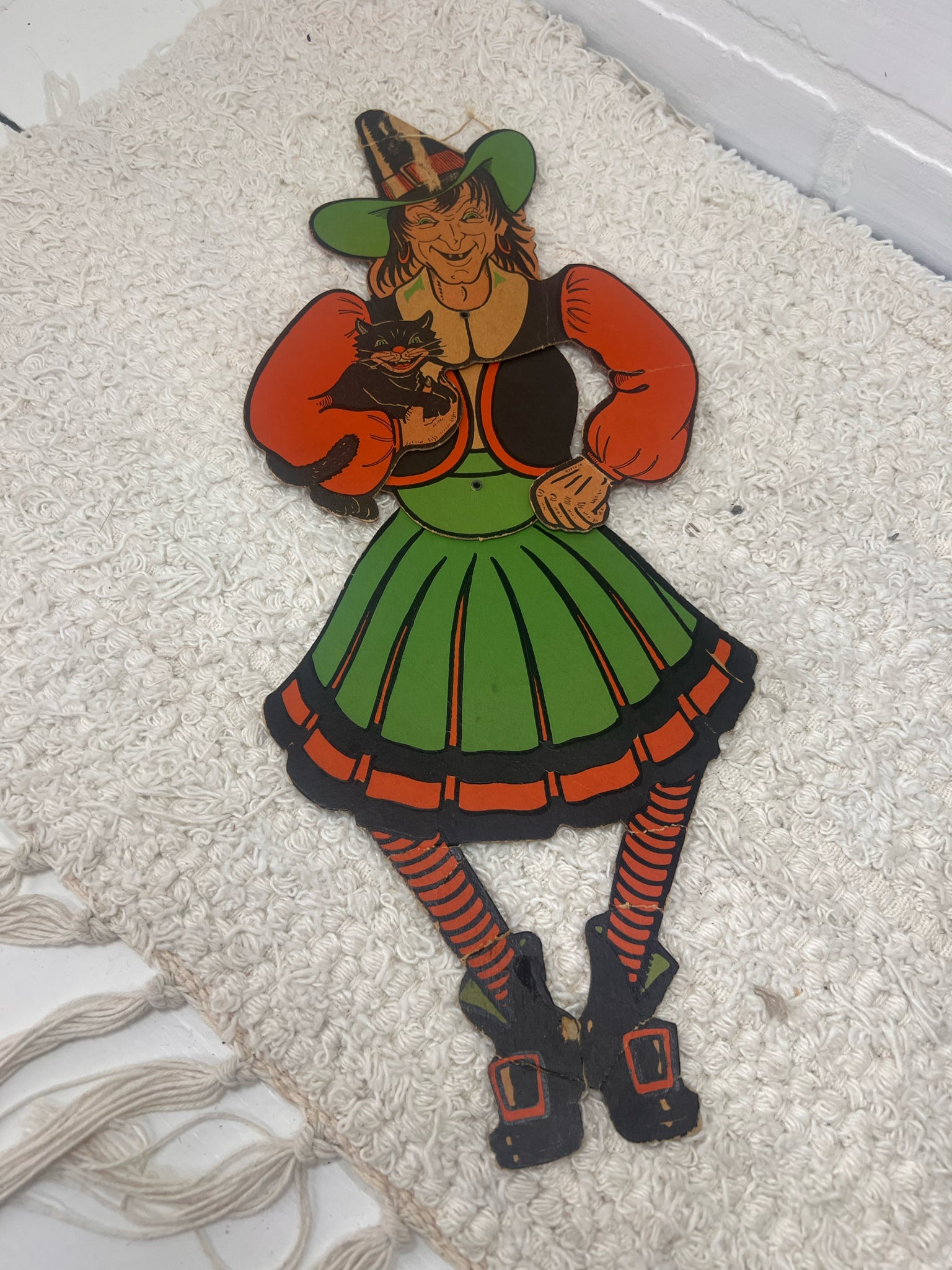 Vintage 1940's Beistle Wiggly Witch Cardboard/Cardstock Jointed Witch Cutout