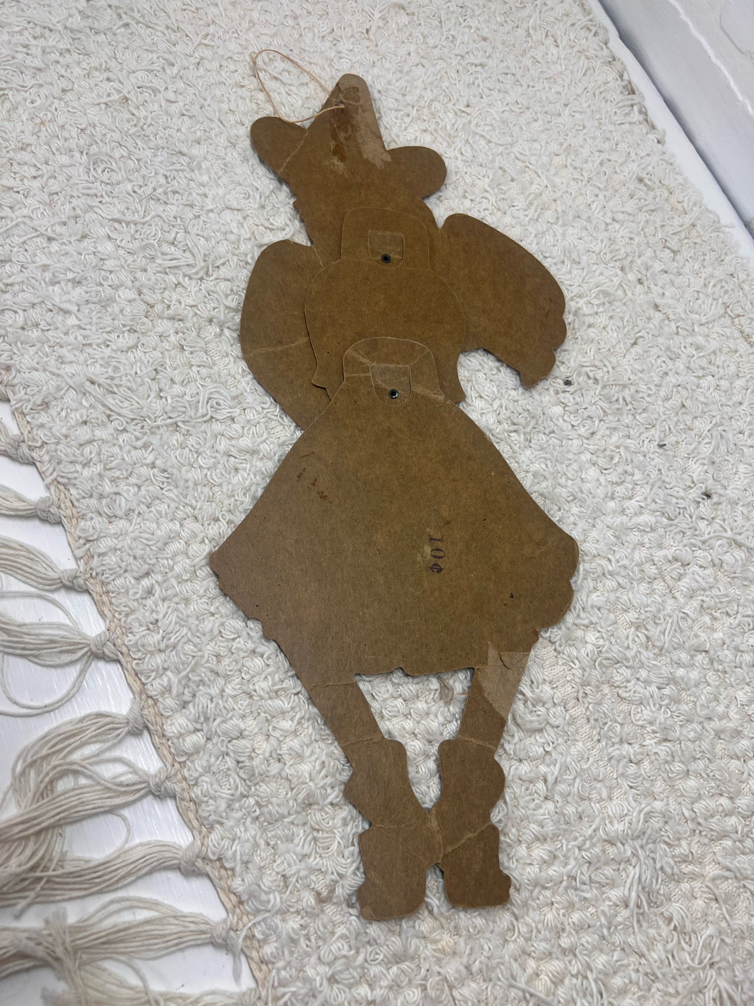 Vintage 14" "Wiggly Witch" from the 1940's. Die cut card stock witch, jointed so she can 'dance' while hanging on a string. As is with some wear, from the 1940's.Â