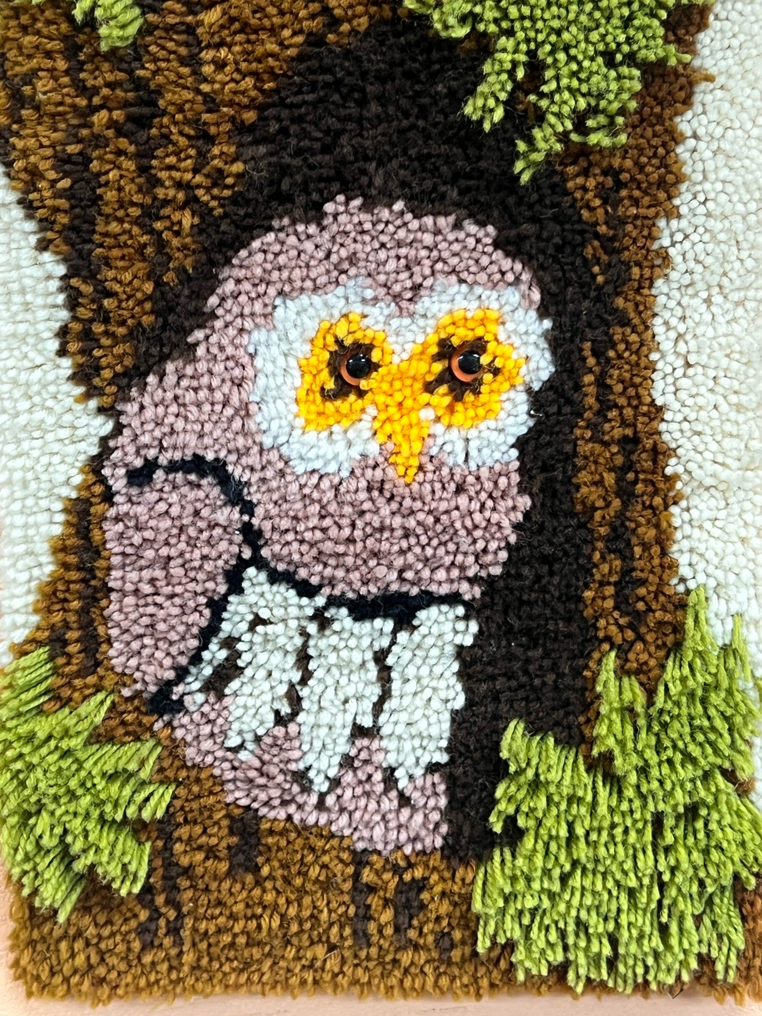Vintage 1970's Owl Latch Hook Wall Hanging