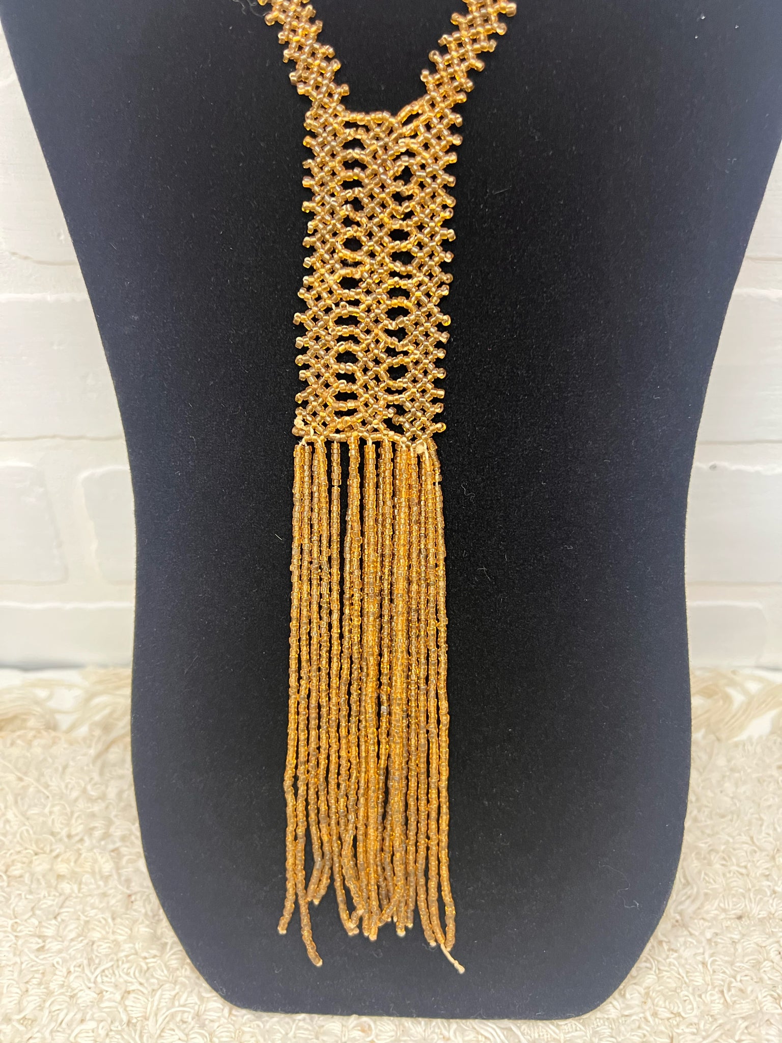 Vintage Art Deco–Style Gold Seed Bead Long Tassel Necklace | Flapper-Inspired