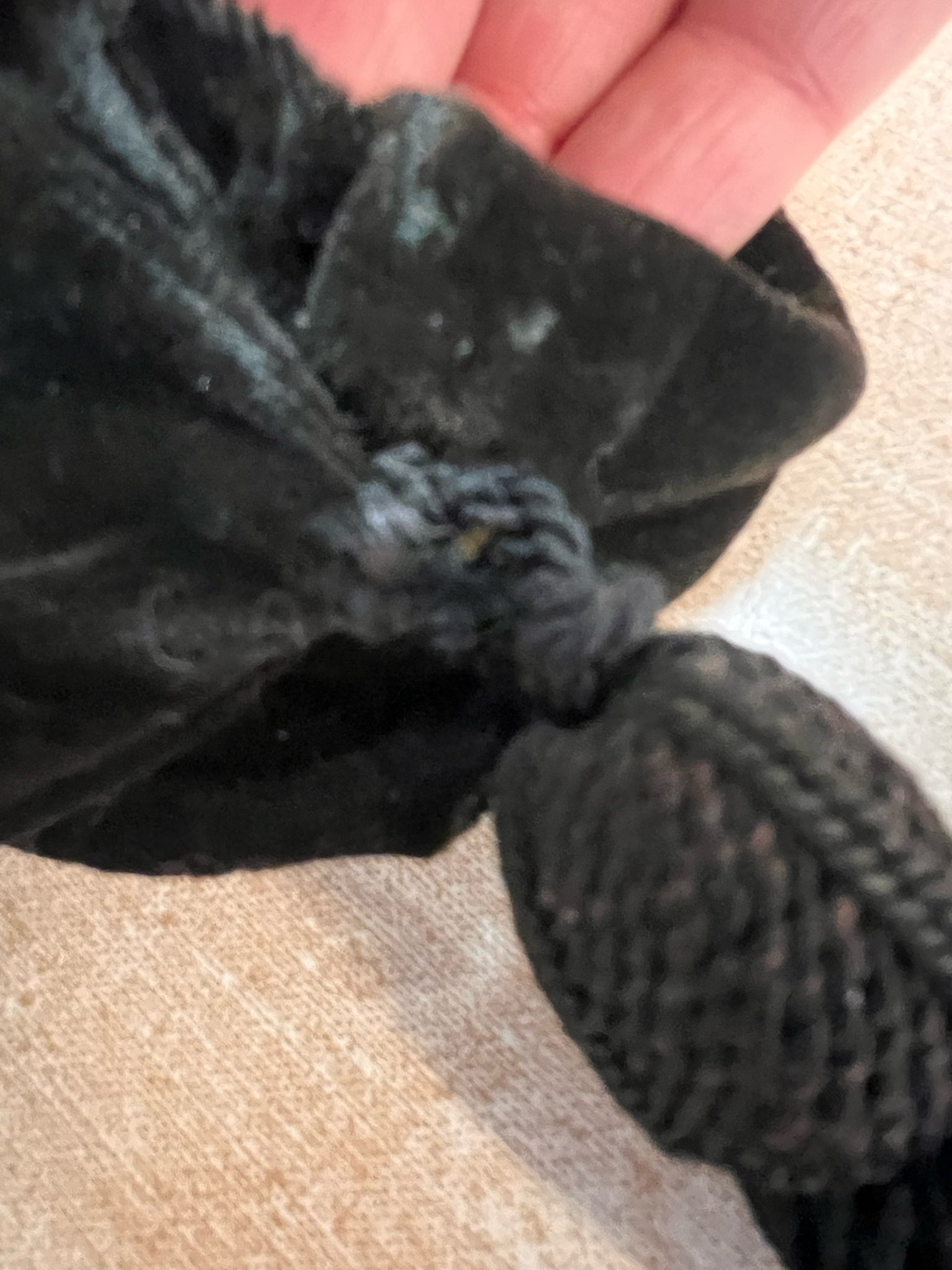 Elegant and full of vintage character, this black velvet tassel-end purse is a beautiful statement accessory with timeless appeal. Crafted in soft black velvet, the purse features an ornate silvertone metal frame with kiss-lock clasp and a delicate chain handle, giving it a classic evening bag silhouette.