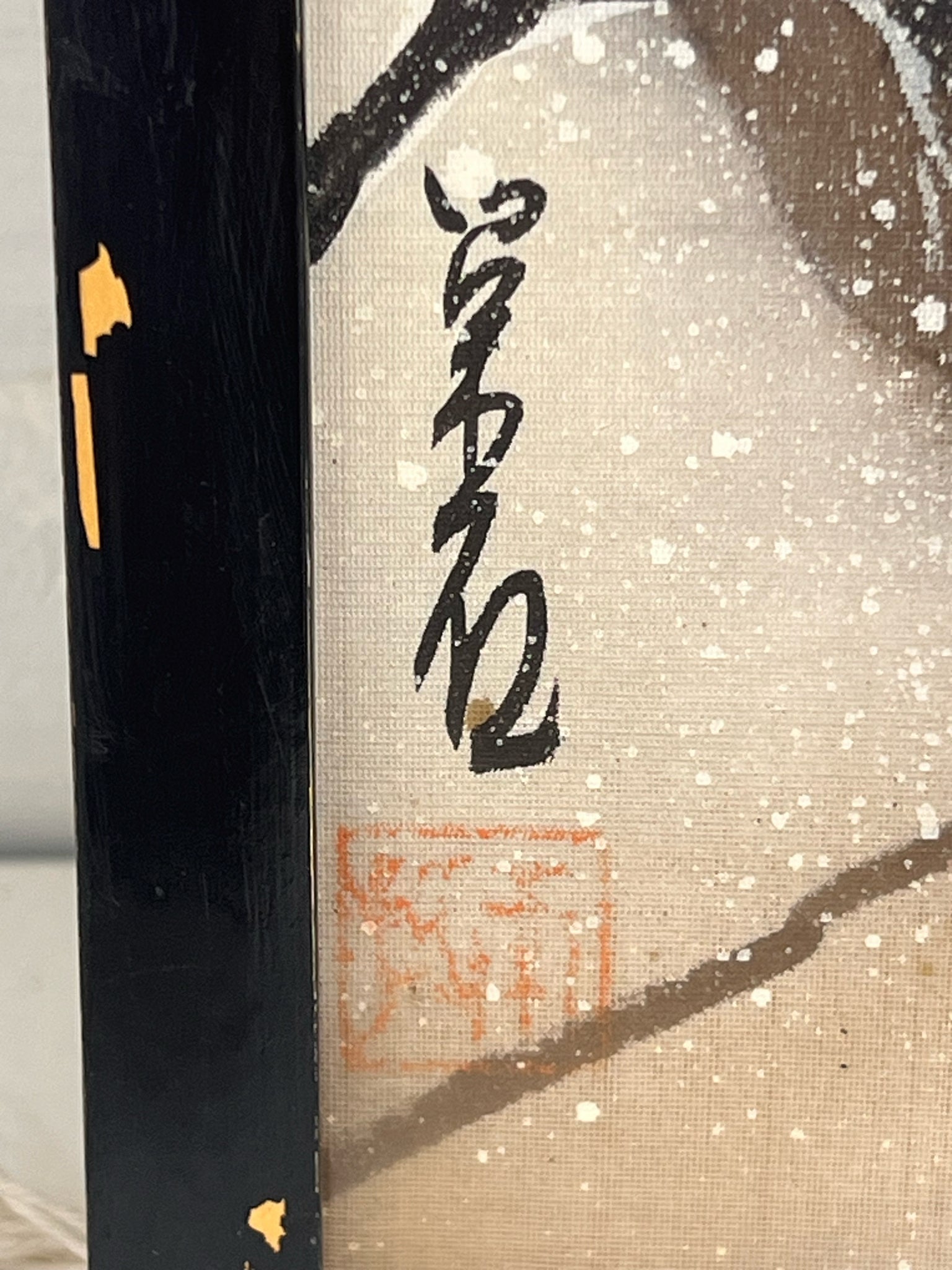 Vintage Framed Painting on Silk - Japanese Snowy Village Scene